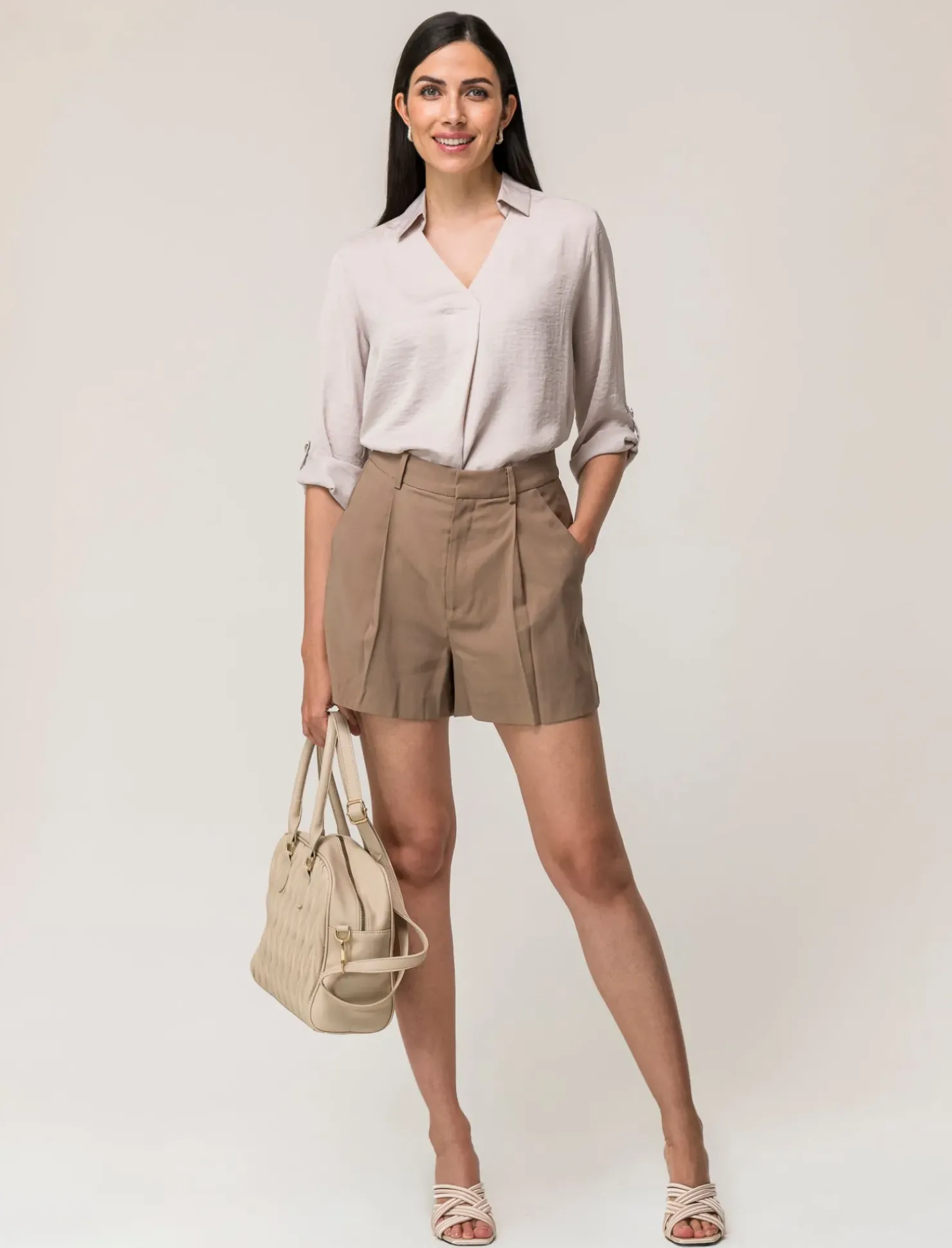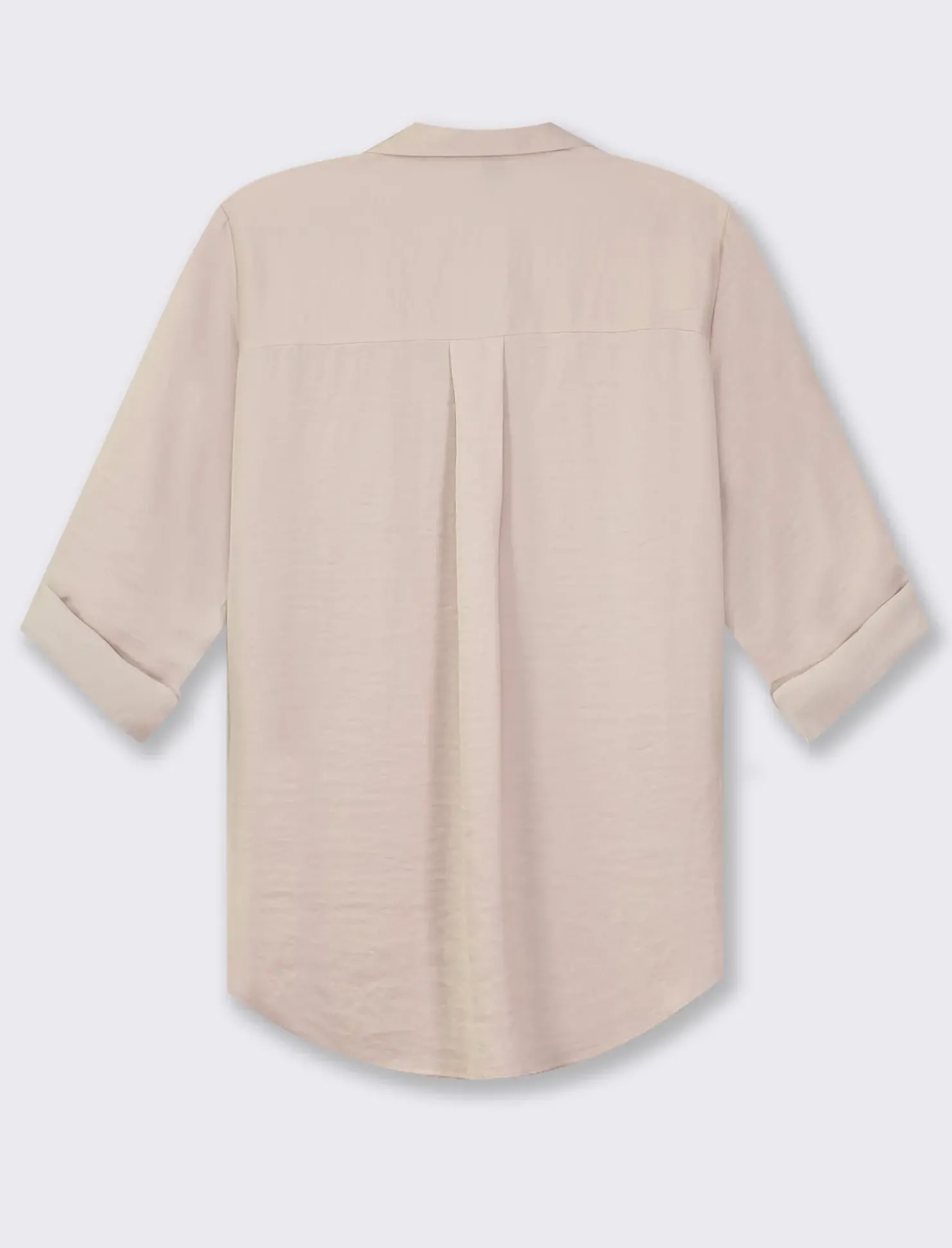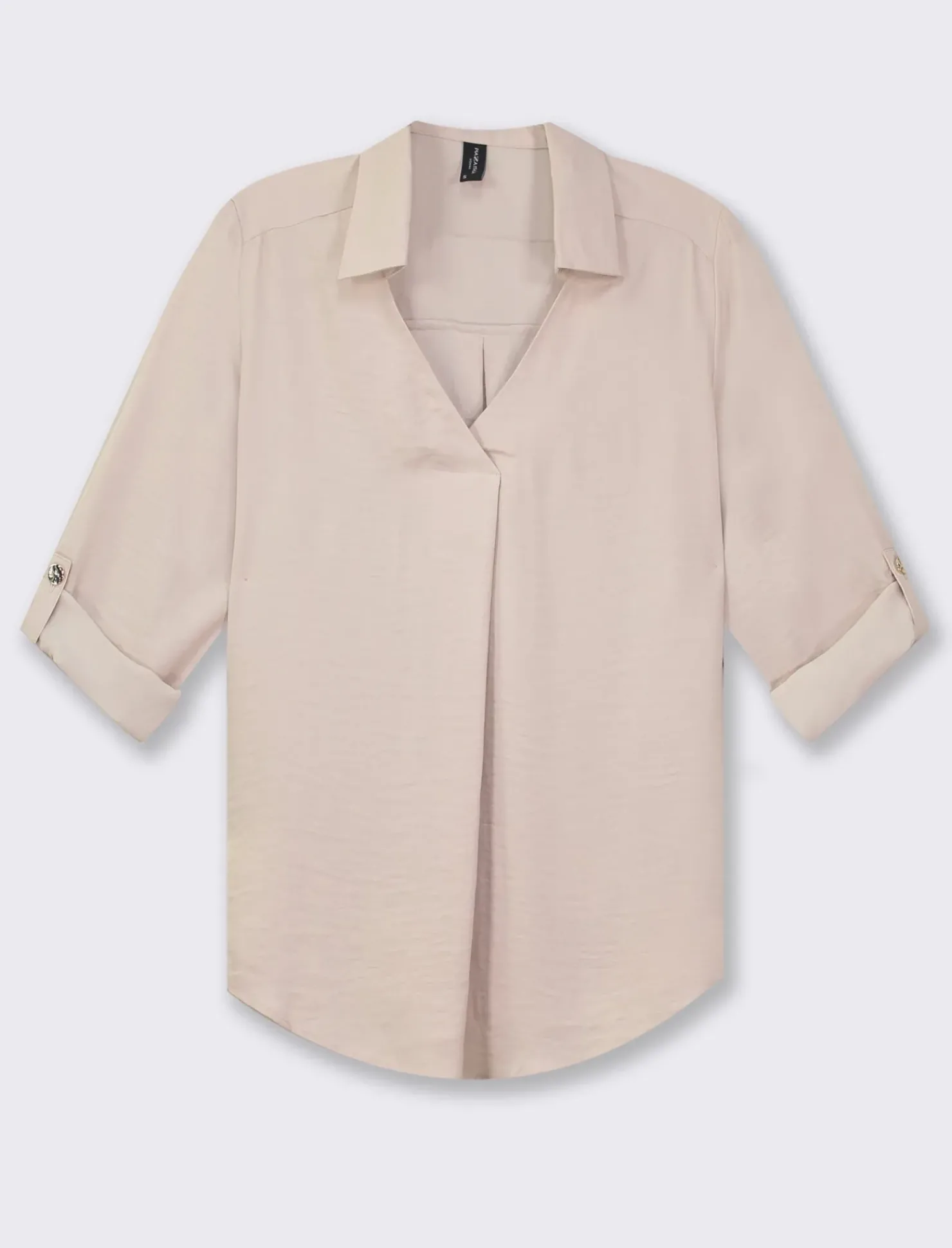 Piazza Italia Camicia scollo a V con manica lunga risvoltabile con alette – Sabbia Beige Best Sale