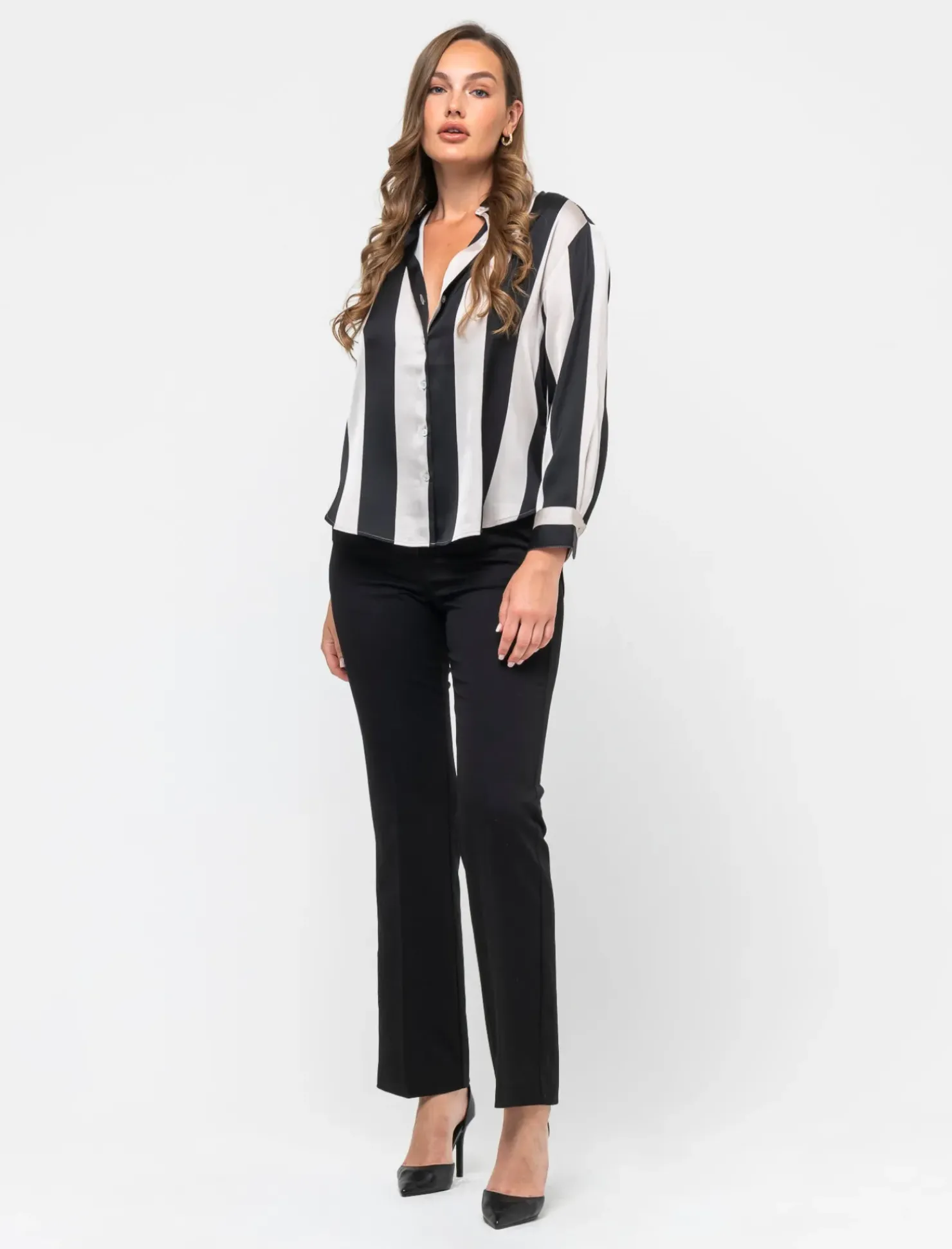 Camicia stampata in raso per donna, perfetta per un look elegante e raffinato. Realizzata con tessuto di alta qualità, garantisce comfort e stile in ogni occasione. La vestibilità morbida e i bottoni in madreperla la rendono un capo unico nel suo genere. Il prodotto è di colore var 1