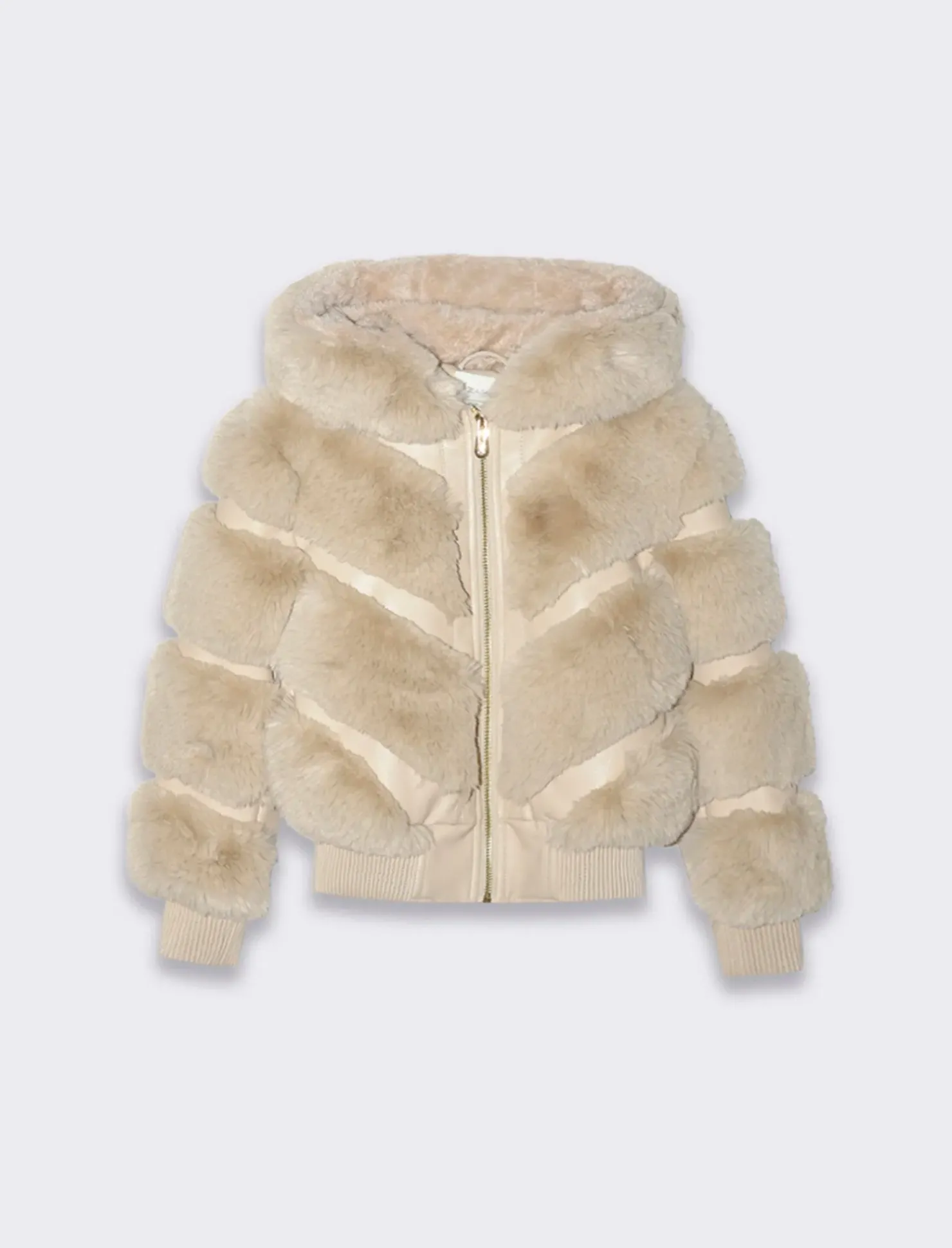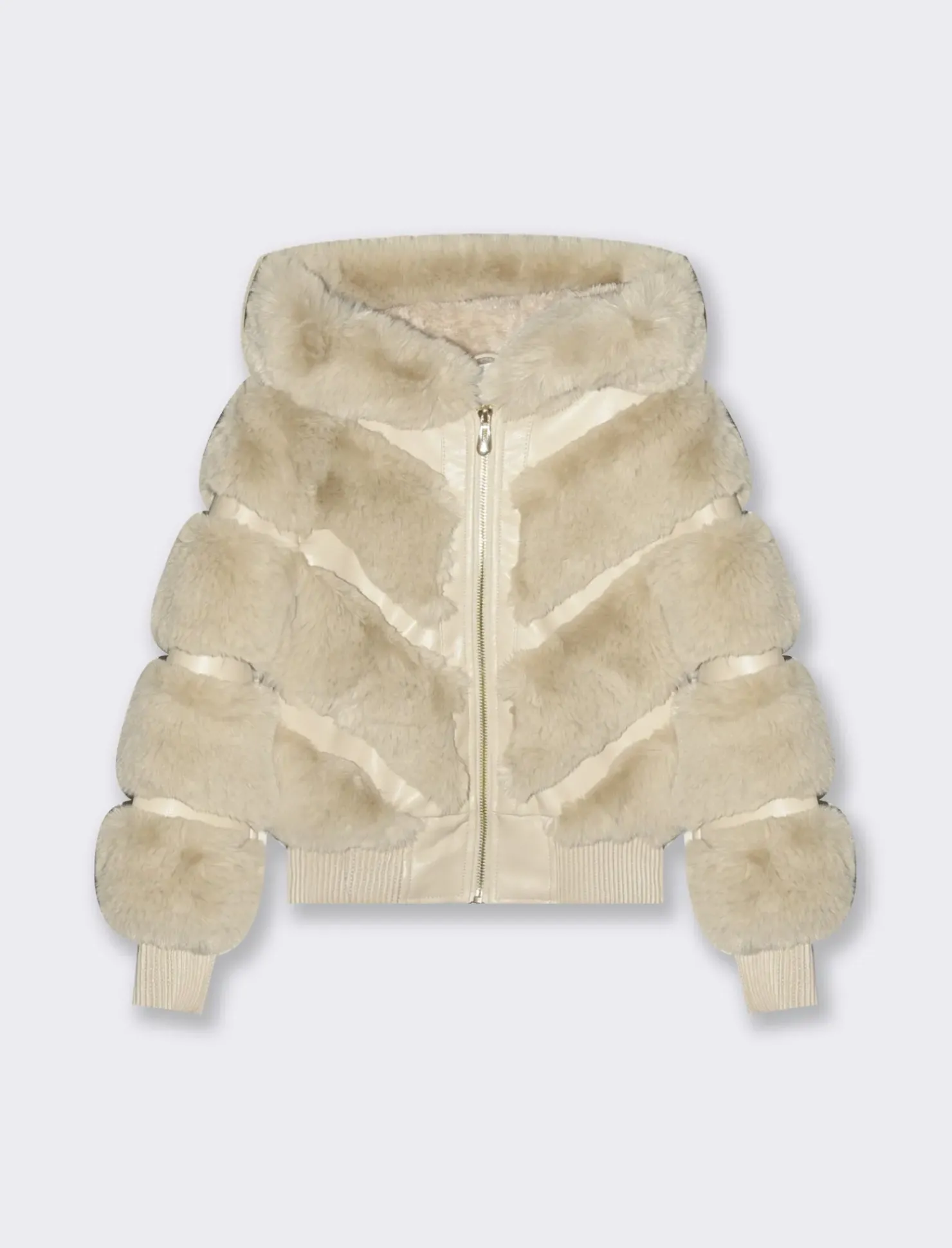 Piazza Italia Capospalla da bambina in finta pelle con intarsi in finta pelliccia che creano un motivo a V – Beige Store