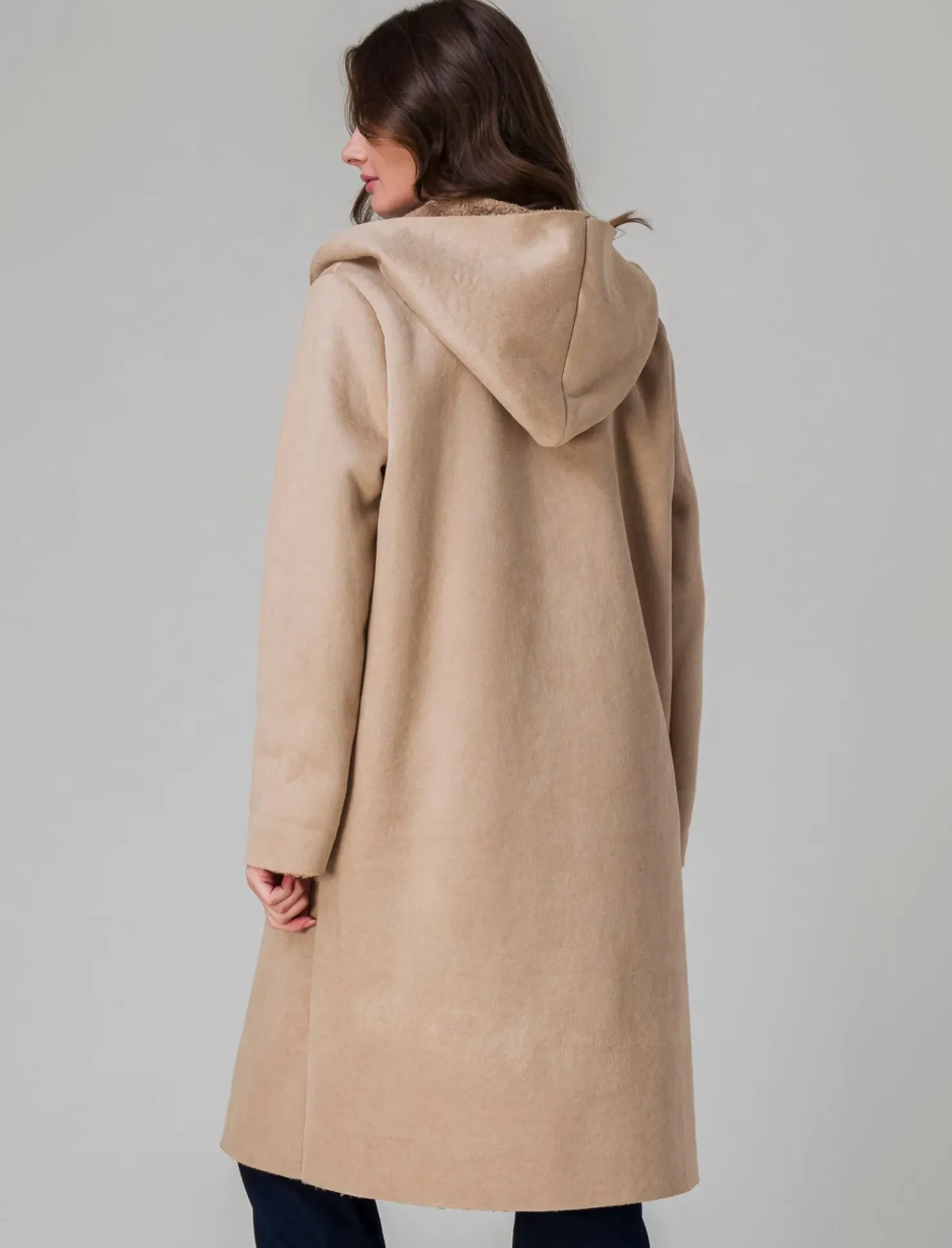Capotto con cappuccio in tessuto boucle Il prodotto è di colore Beige