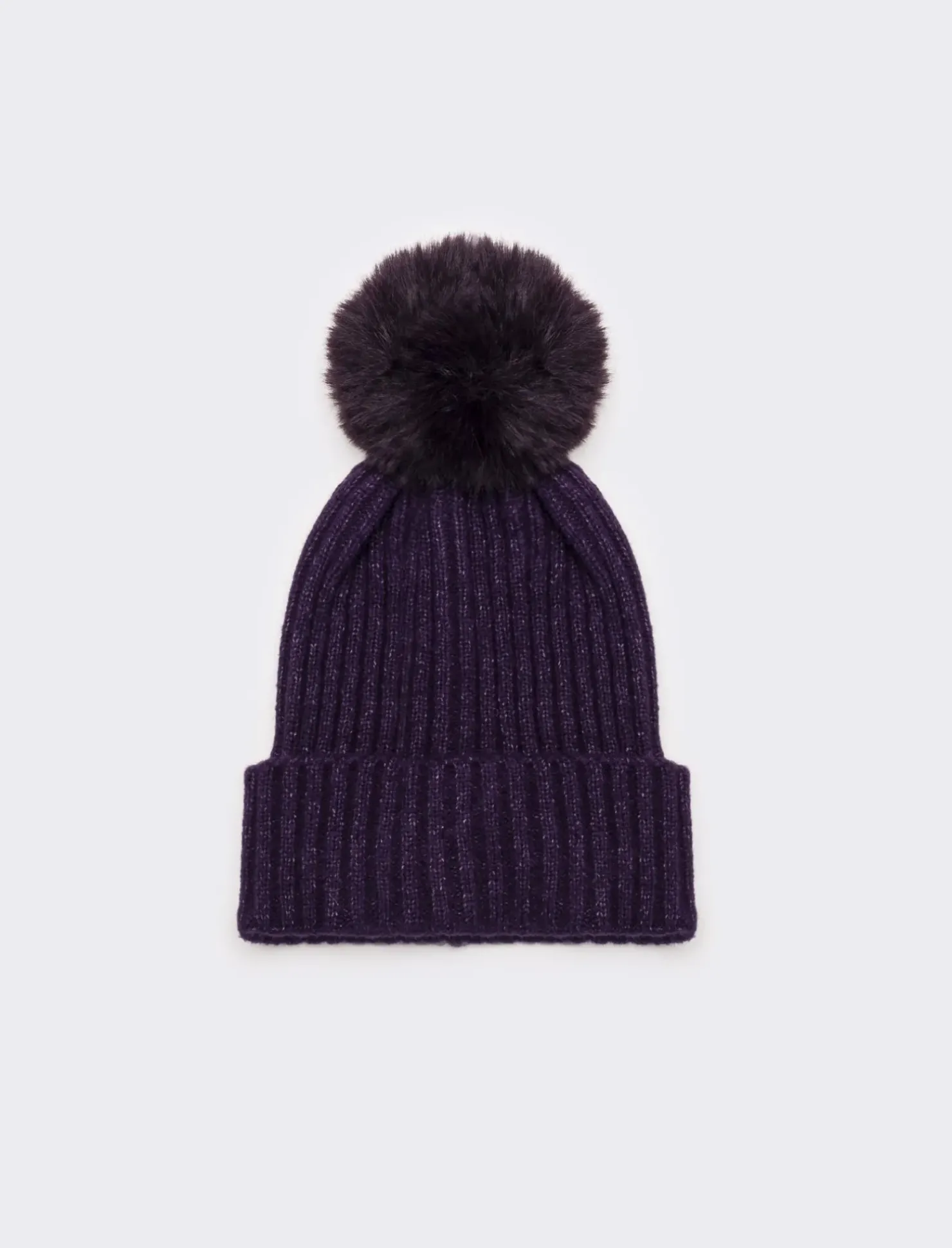 Piazza Italia Cappello da donna a coste con risvolto e pon pon – Viola 0 New