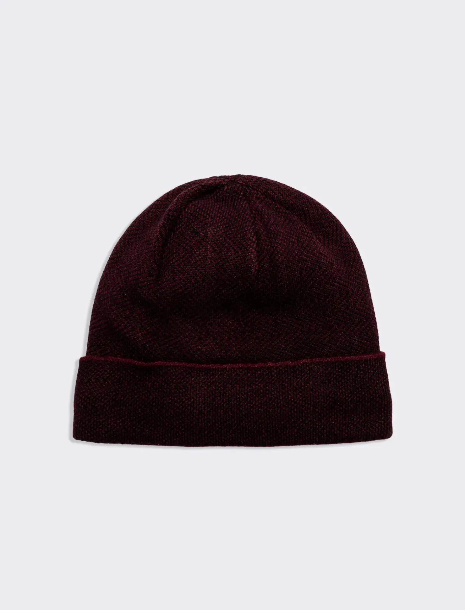 Piazza Italia Cappello modello cuffia con motivo spigato e risvolto – Bordeaux Rosso Outlet