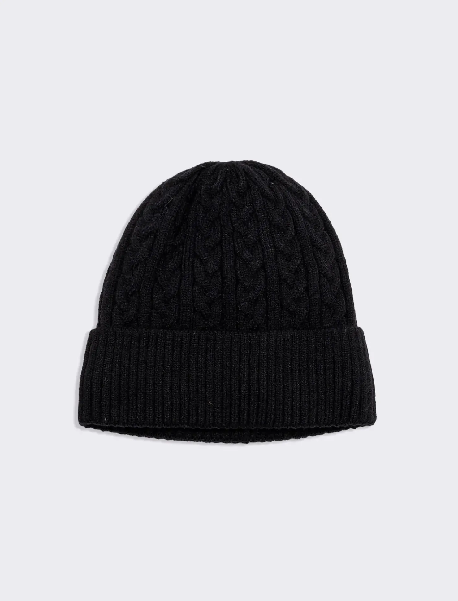 Piazza Italia Cappello modello cuffia da uomo in treccia con risvolto – Nero Clearance