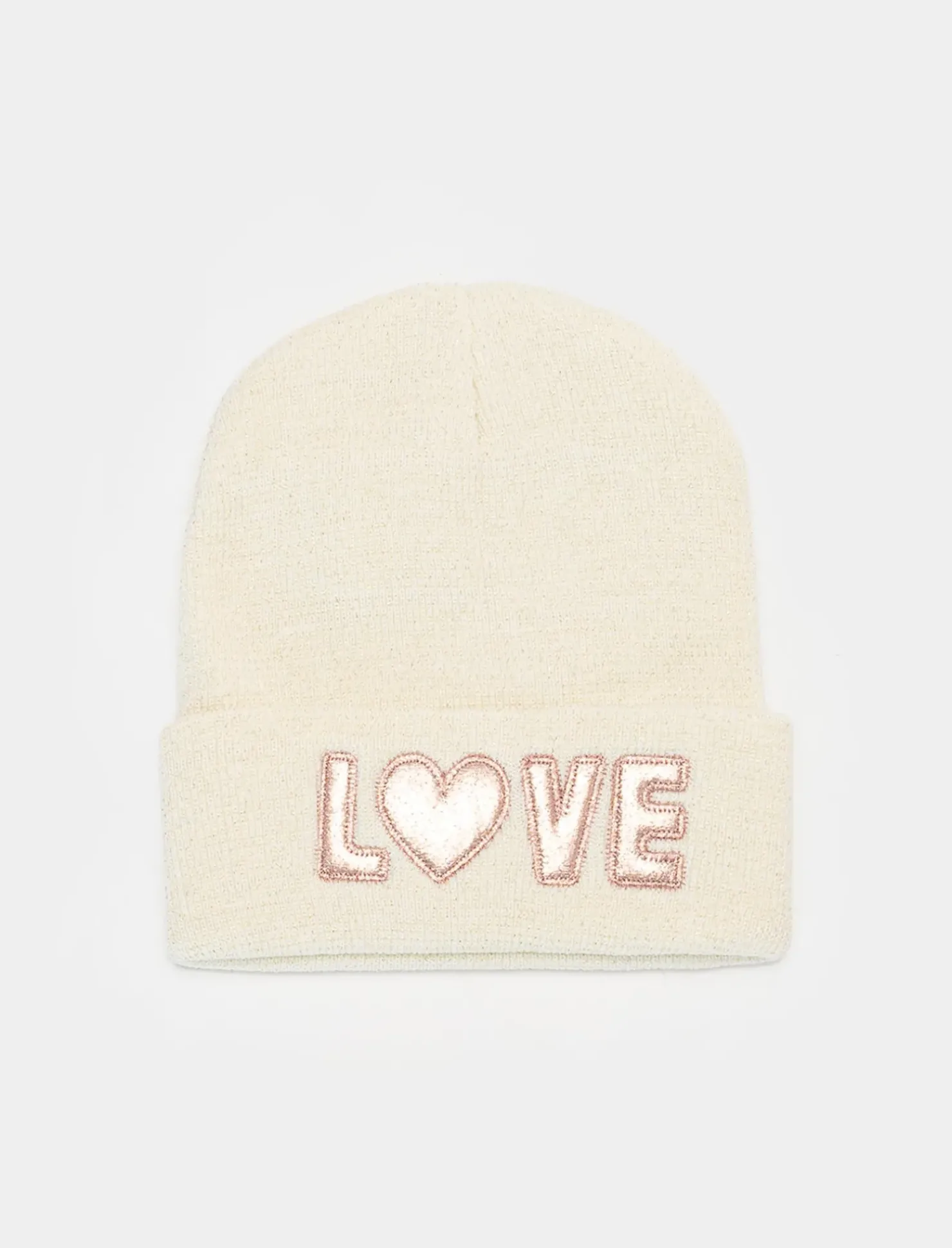 Piazza Italia Cappello modello cuffia patch love da bambina – Bianco sporco 0 Best Sale