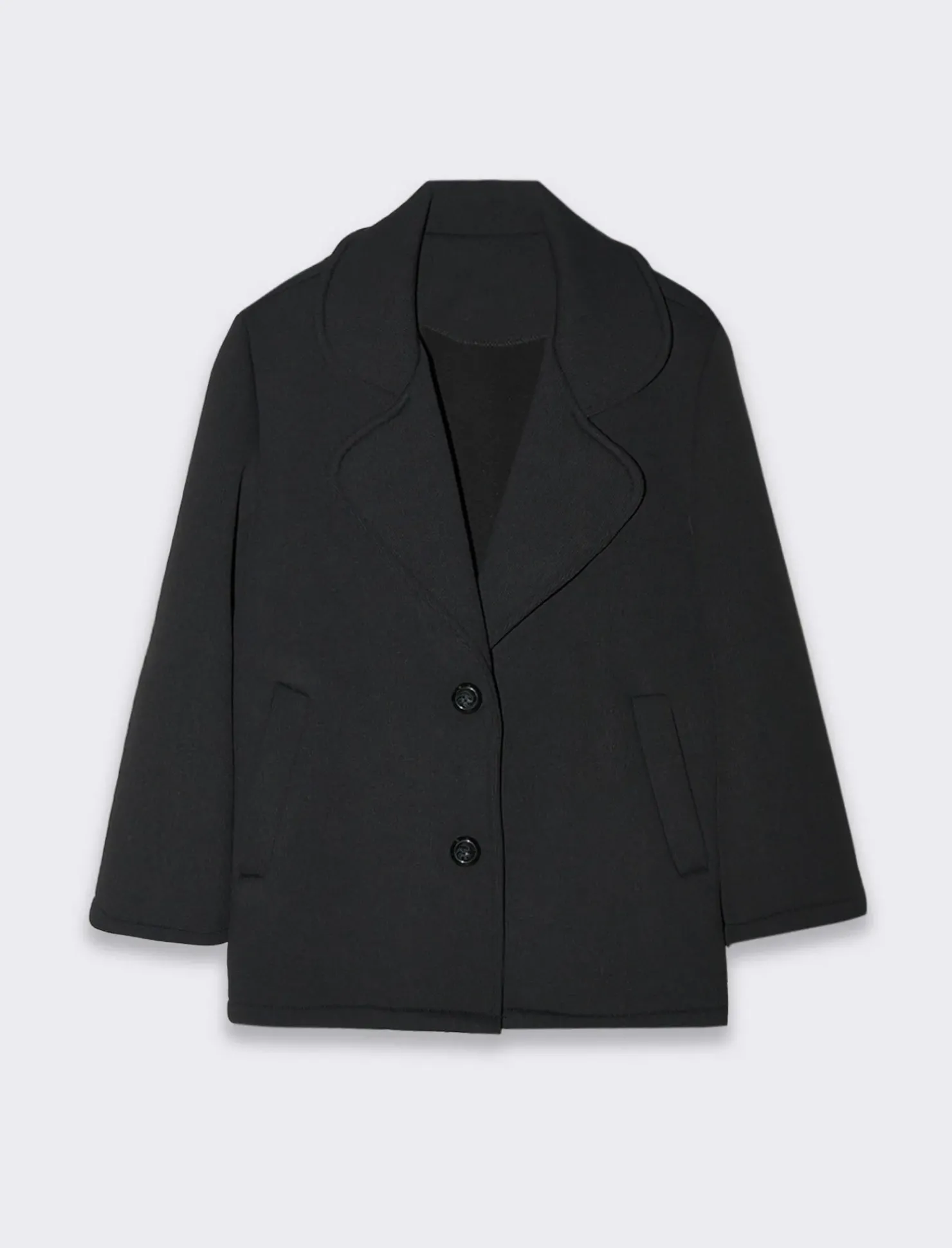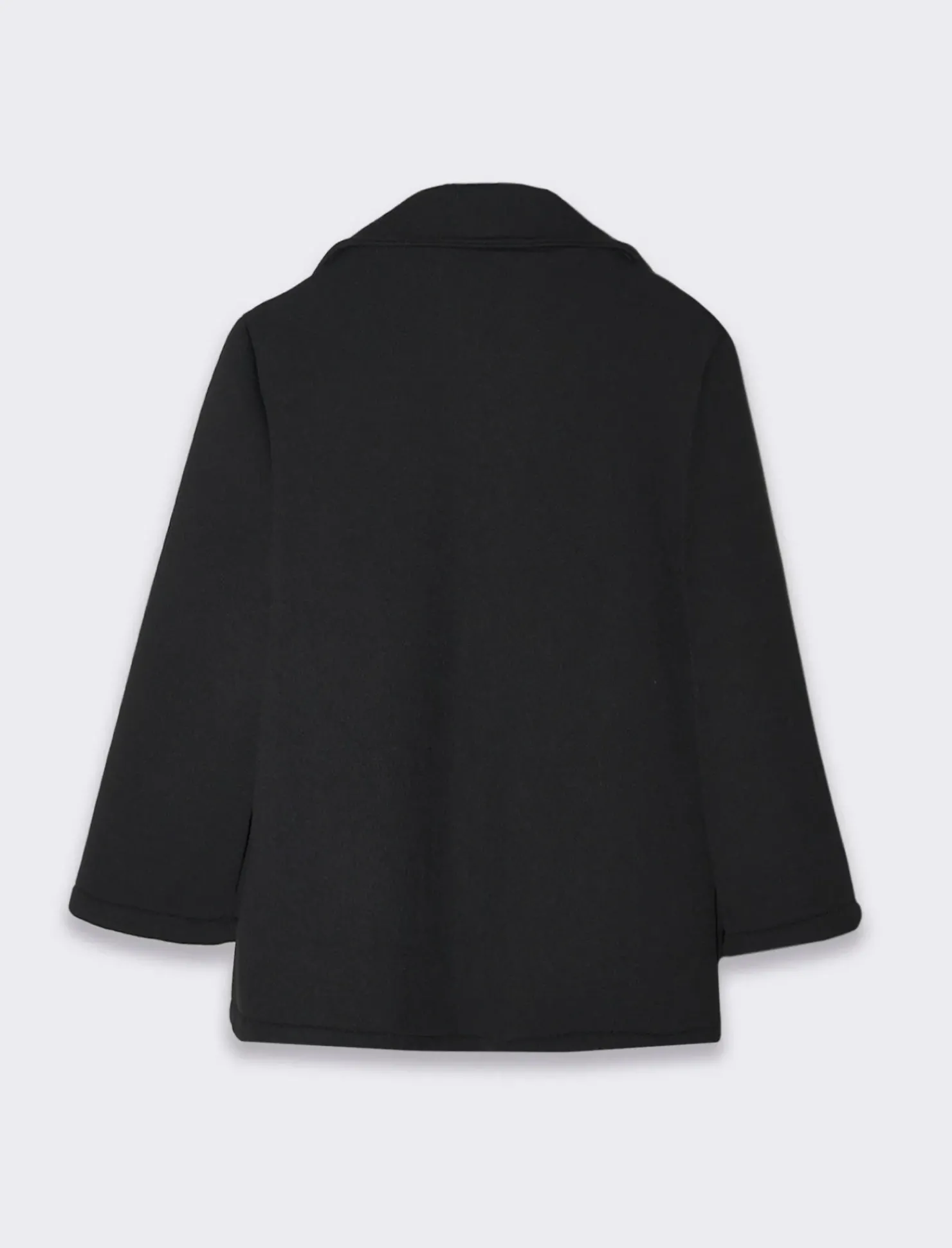 Questo cappottino corto ha una vestibilità regular, che offre una silhouette classica e confortevole, adatta a diverse forme del corpo.Le maniche a campana aggiungono un tocco di originalità e femminilità, creando un effetto fluido e dinamico. Le tasche a taglio sui fianchi sono pratiche e discrete, questo cappottino è ideale per essere indossato sia in contesti casual che più formali, grazie alla sua versatilità e al suo design curato. Il prodotto è di colore Nero