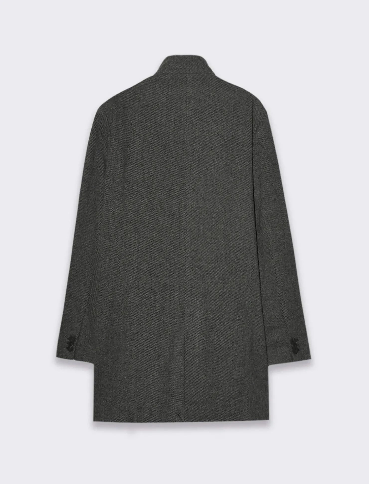Cappotto collo coreano in tessuto diagonale, perfetto per un look elegante e moderno. Le maniche lunghe e le tasche a filetto sui fianchi aggiungono praticità e stile. Con dettaglio di tasca interna e orlo con spacco centrale posteriore, questo capo è ideale per l’uomo contemporaneo che ama distinguersi con classe. La chiusura frontale con bottoni completa il look, garantendo un outfit raffinato in ogni occasione. Il prodotto è di colore Nero