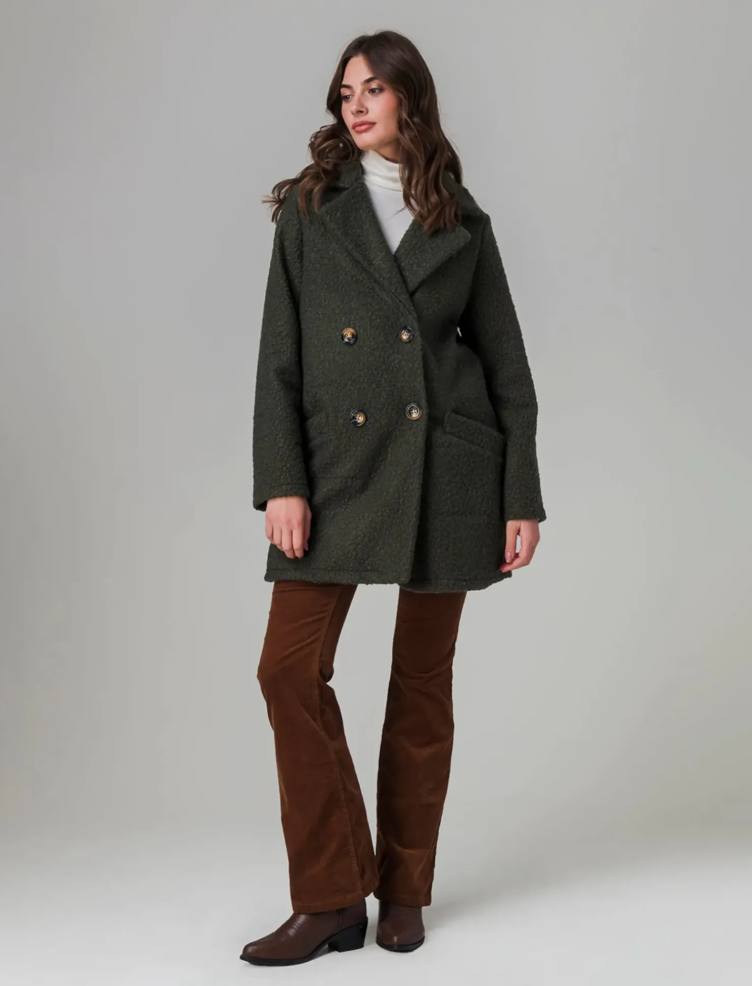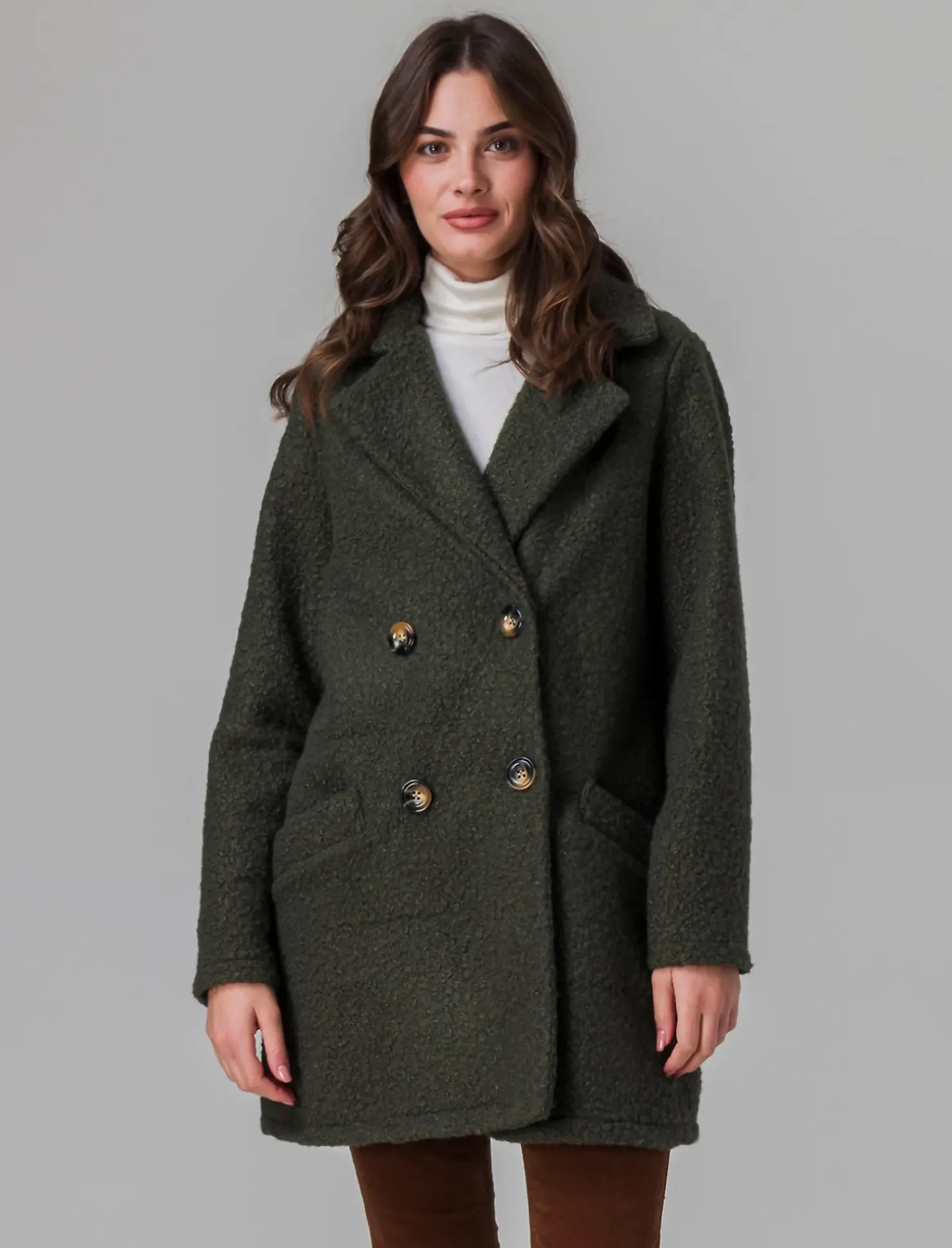 Cappotto doppiopetto in tessuto bouclè Il prodotto è di colore Ve.milit.