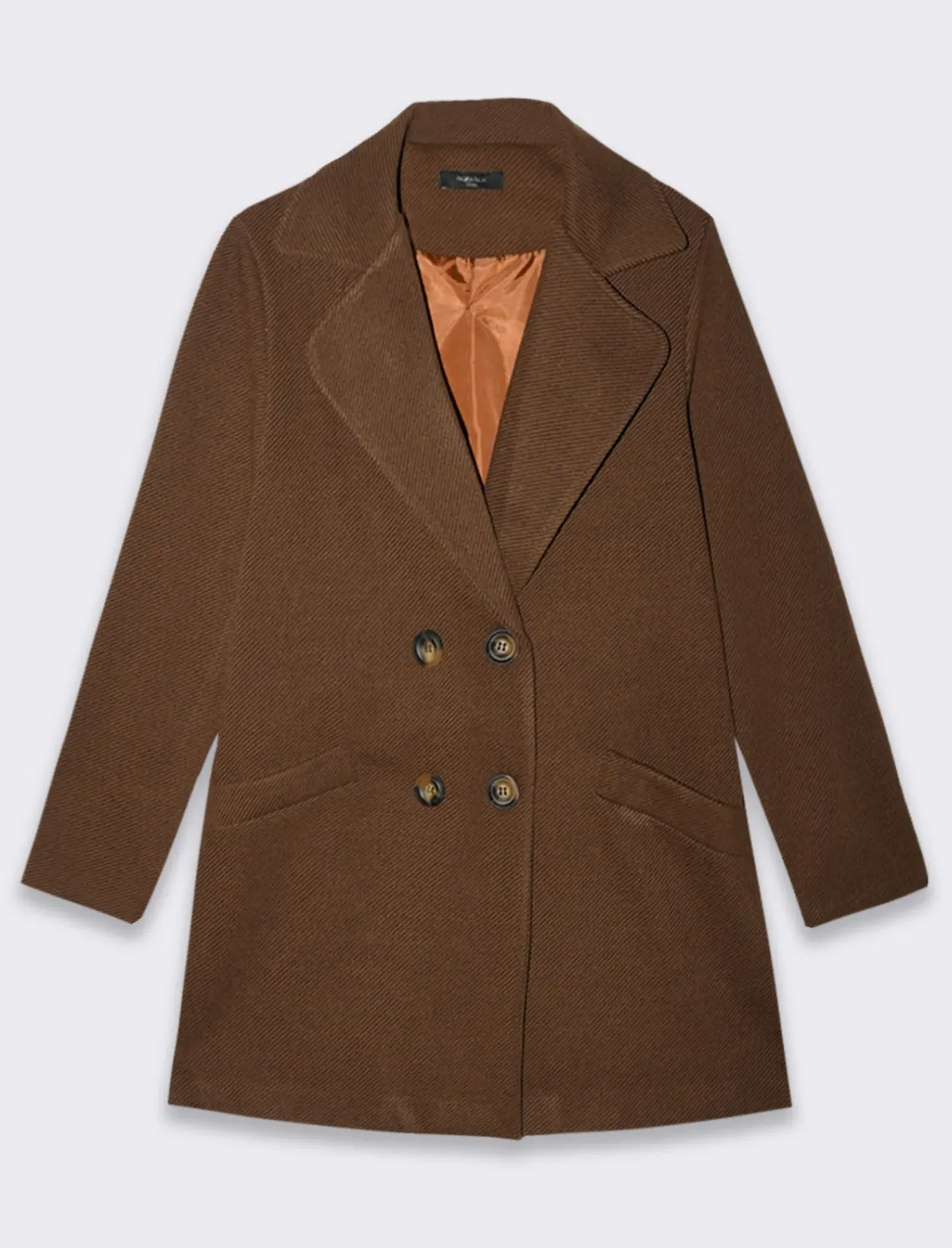 Cappotto doppiopetto in tessuto diagonale Il prodotto è di colore Moro