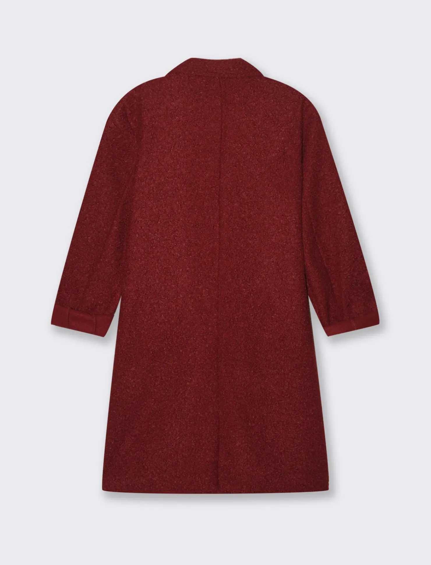 CAPPOTTO CON COLLO REVERSE IN TESSUTO BOUCLE’. TASCHE A TOPPA SUL DAVANTI Il prodotto è di colore Rosso india