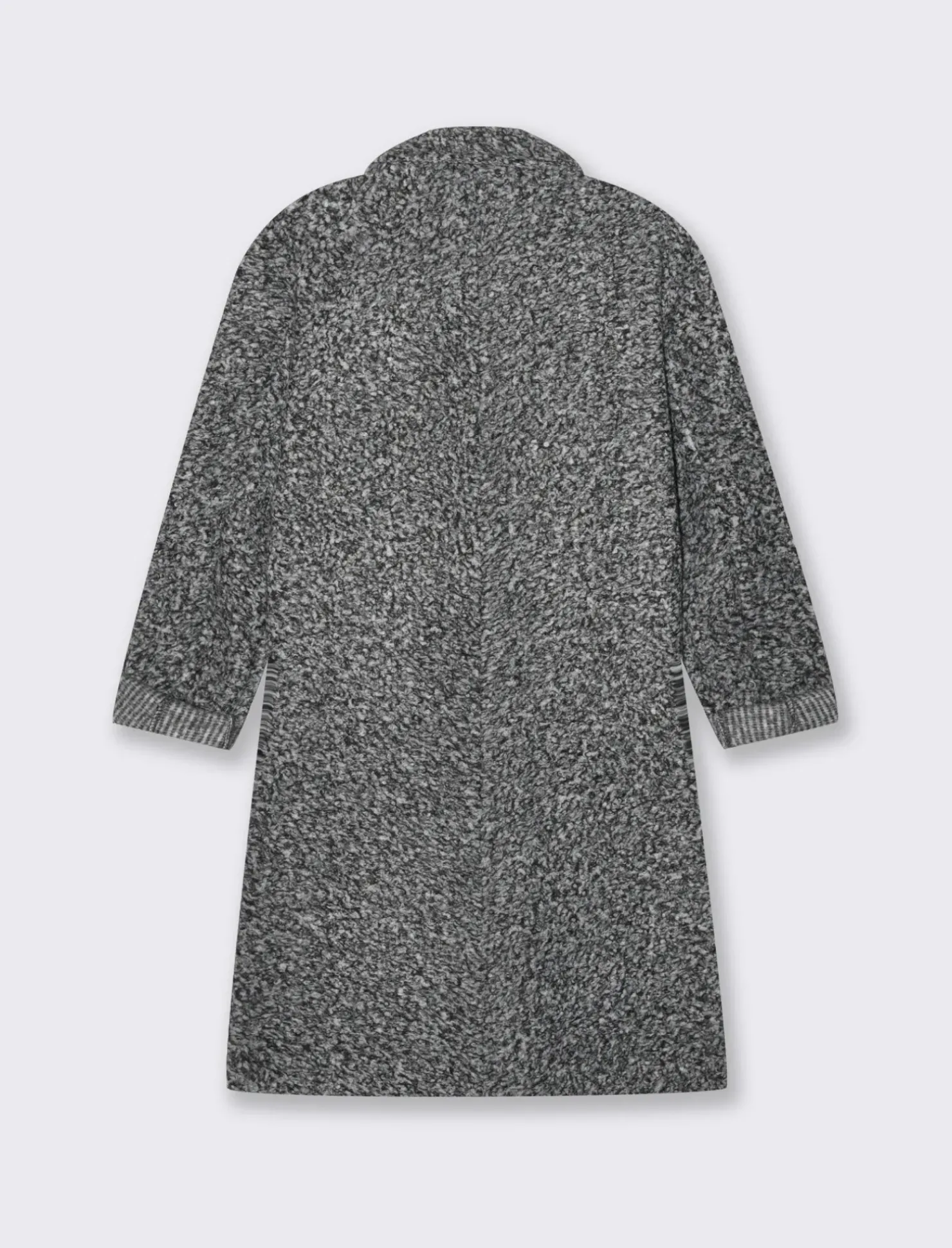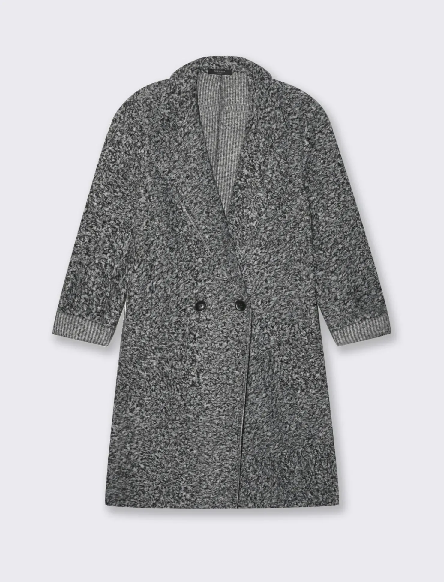 CAPPOTTO CON COLLO REVERSE IN TESSUTO BOUCLE’. TASCHE A TOPPA SUL DAVANTI Il prodotto è di colore sale/pepe
