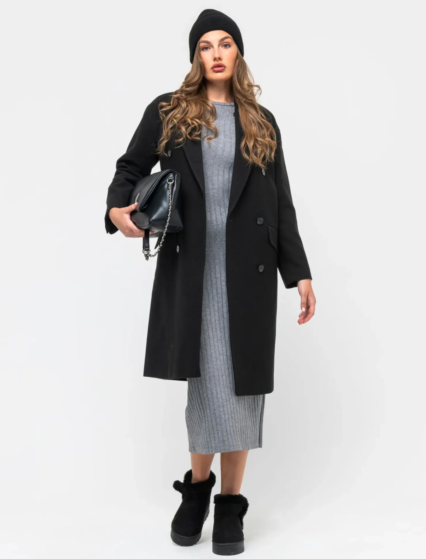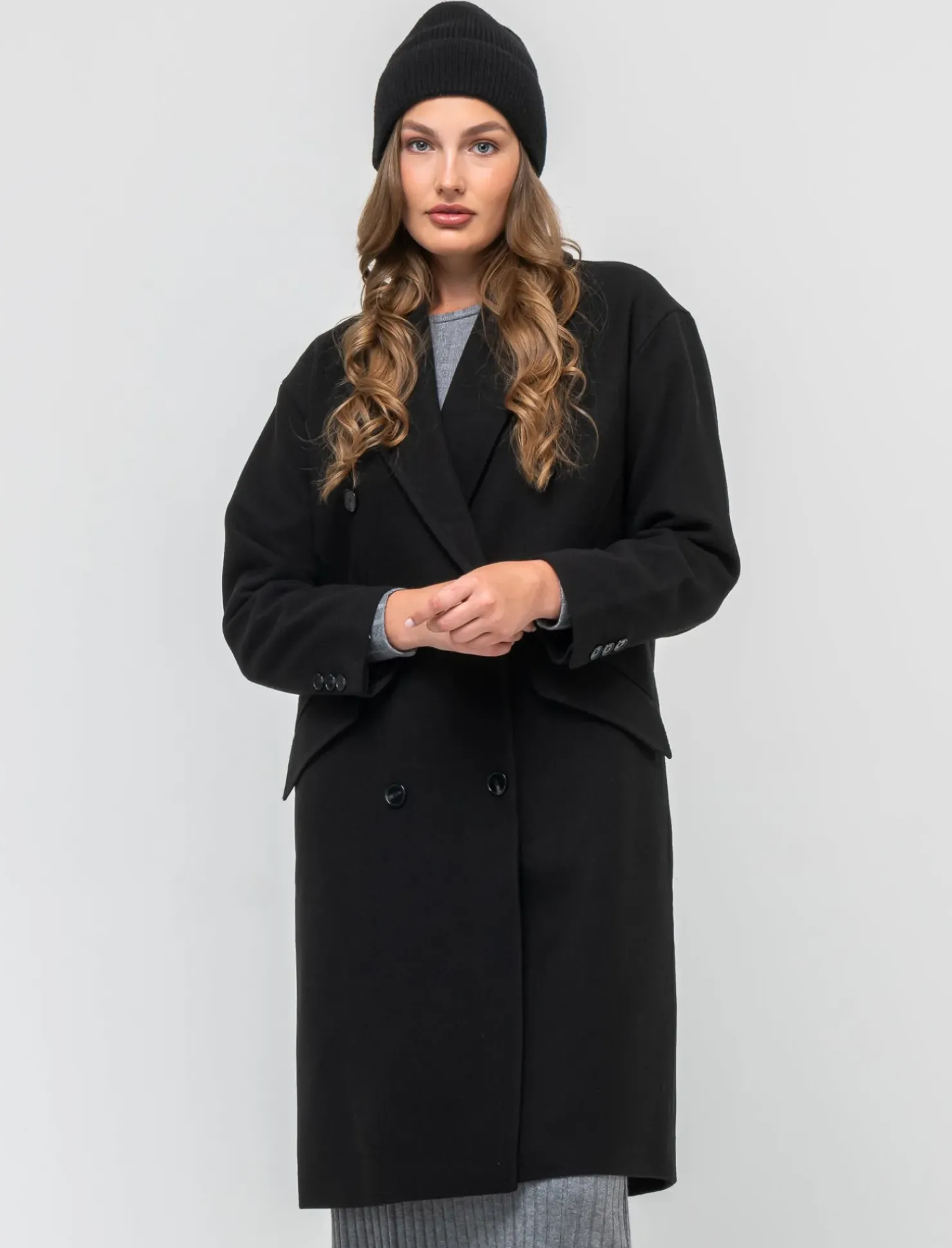 Cappotto dalla linea squadrata, pensato per la donna moderna che ama esprimere il proprio stile con eleganza. La vestibilità over offre comfort e libertà di movimento, mentre l’abbottonatura a doppio petto aggiunge un tocco sofisticato. Le tasche con pattina non solo sono pratiche, ma arricchiscono il design, rendendolo perfetto per ogni occasione. Il prodotto è di colore Nero