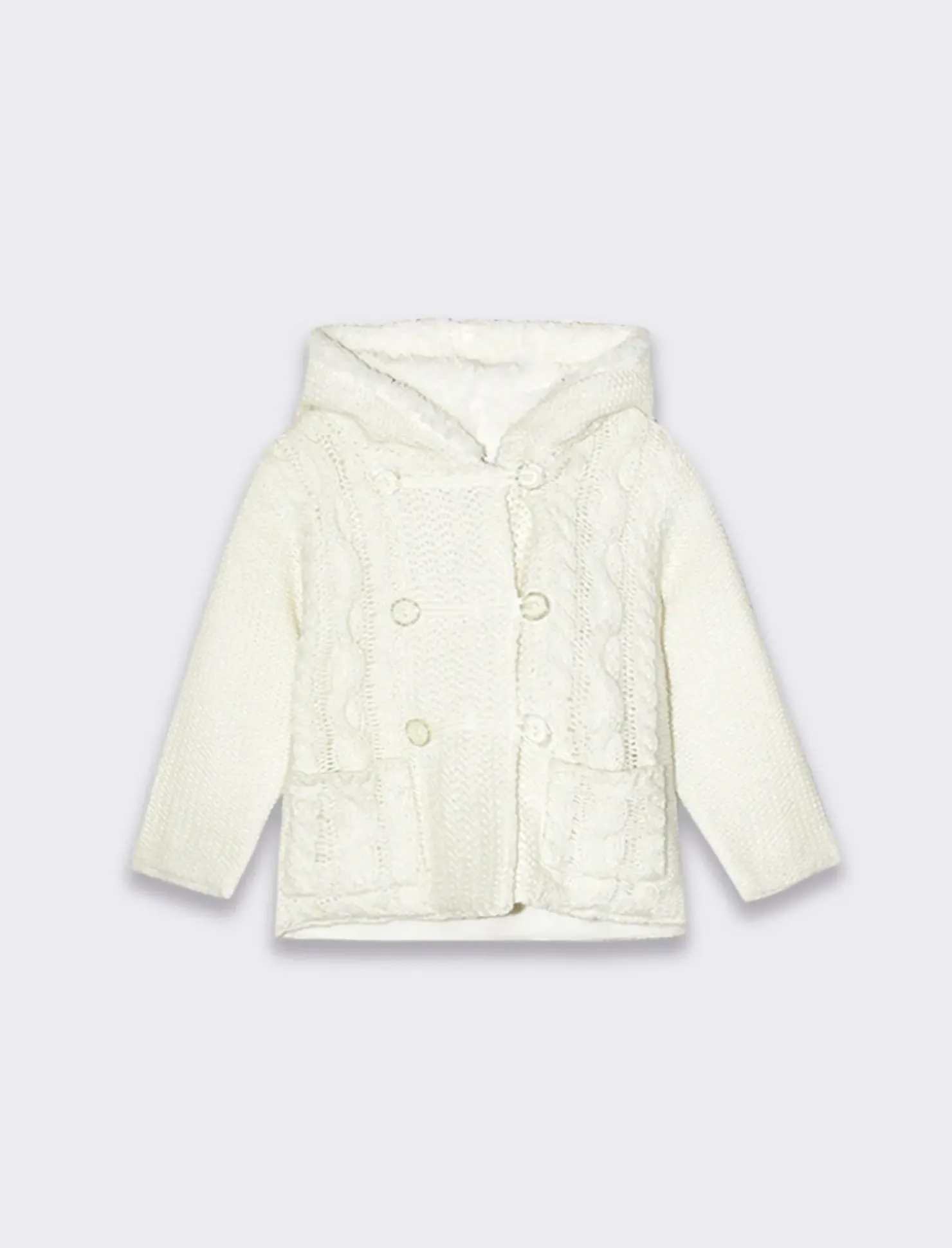 Piazza Italia Cardigan da neonata con cappuccio e bottoni con pelliccia interna – sporco Bianco Outlet