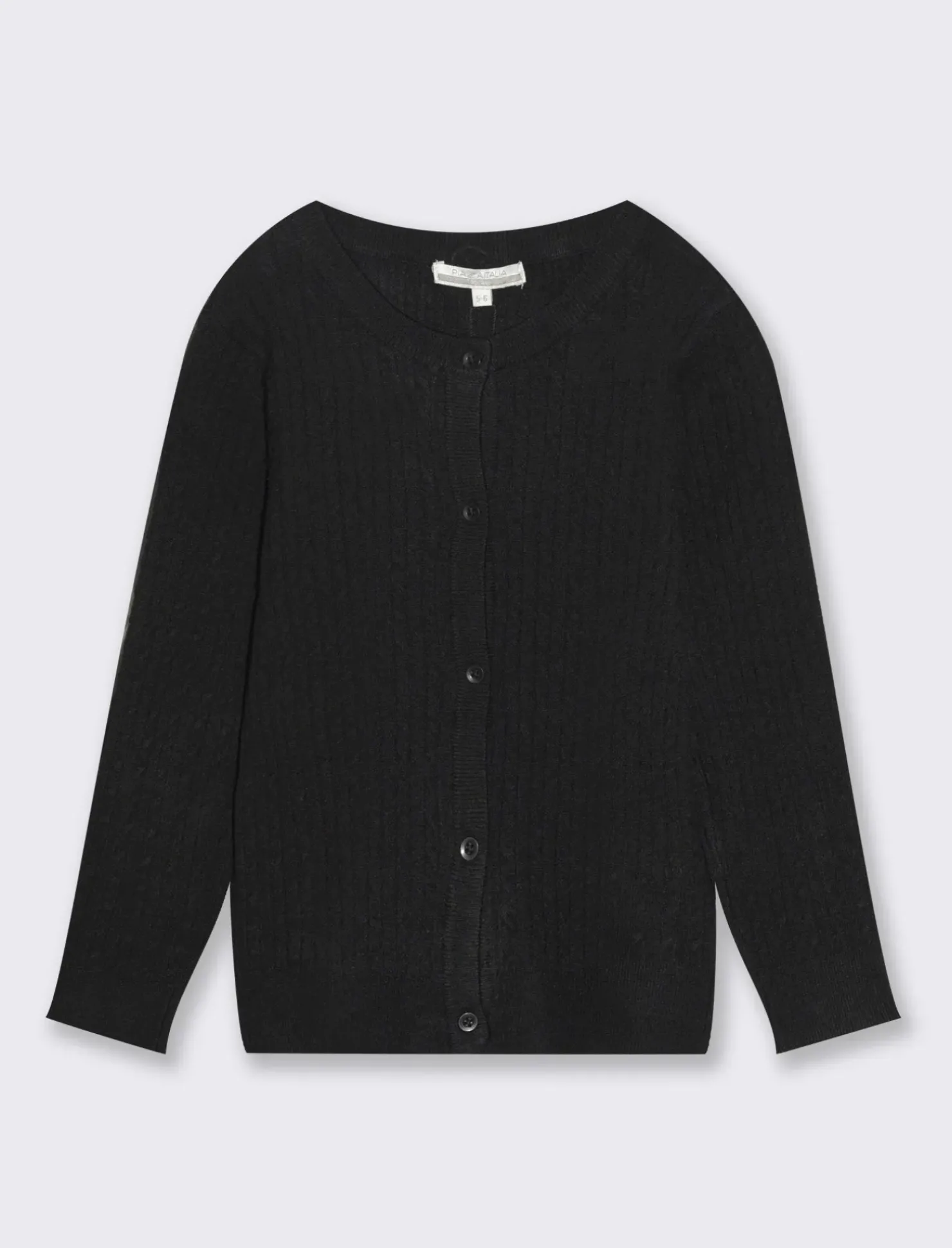Cardigan con trecce per bambina, realizzato in morbida poliviscosa. Il design a treccia conferisce un tocco di eleganza, mentre il girocollo e la vestibilità regular assicurano comfort e praticità. Ideale per completare ogni outfit in modo raffinato e alla moda. Il prodotto è di colore Nero
