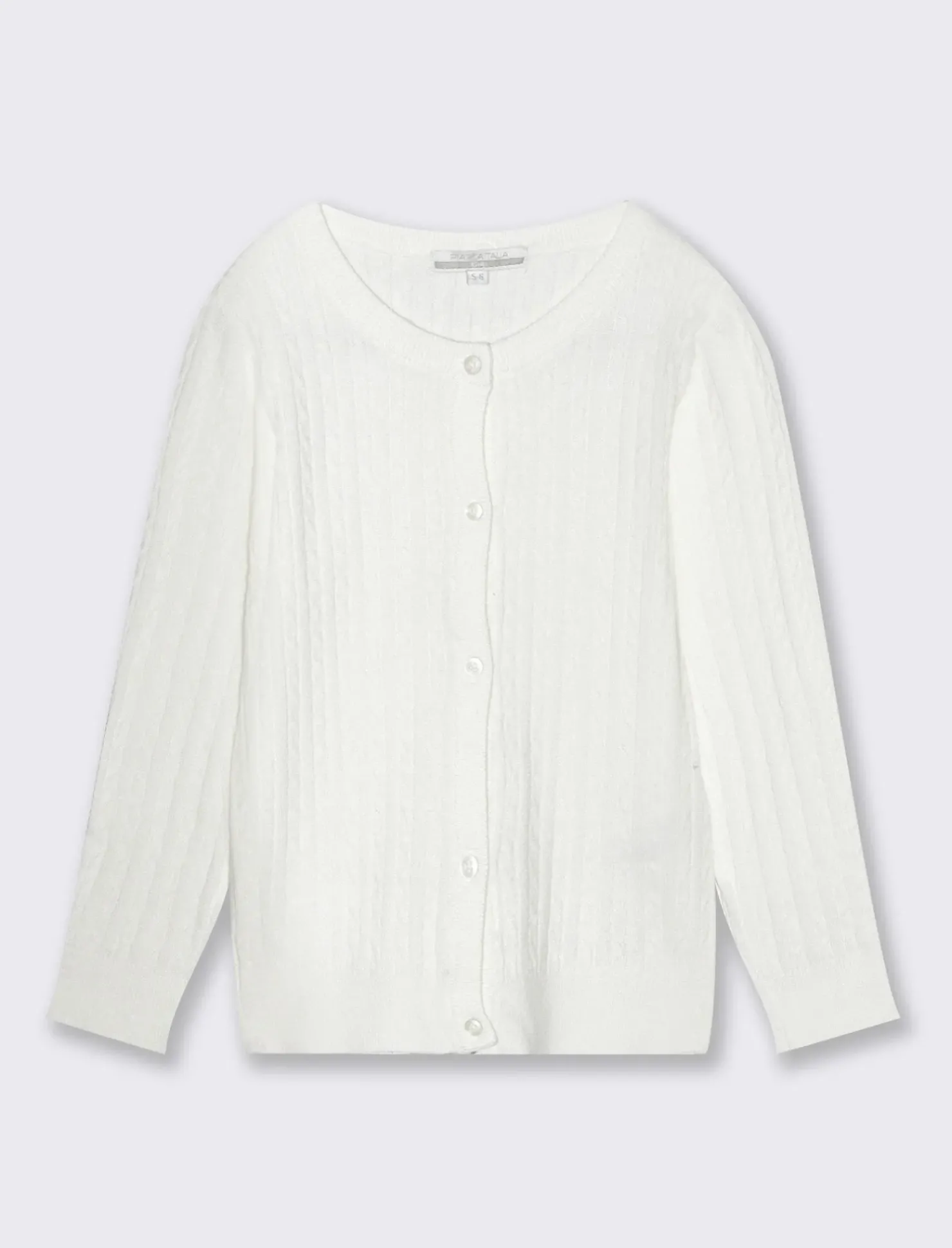Cardigan con trecce per bambina, realizzato in morbida poliviscosa. Il design a treccia conferisce un tocco di eleganza, mentre il girocollo e la vestibilità regular assicurano comfort e praticità. Ideale per completare ogni outfit in modo raffinato e alla moda. Il prodotto è di colore Bianco sporco