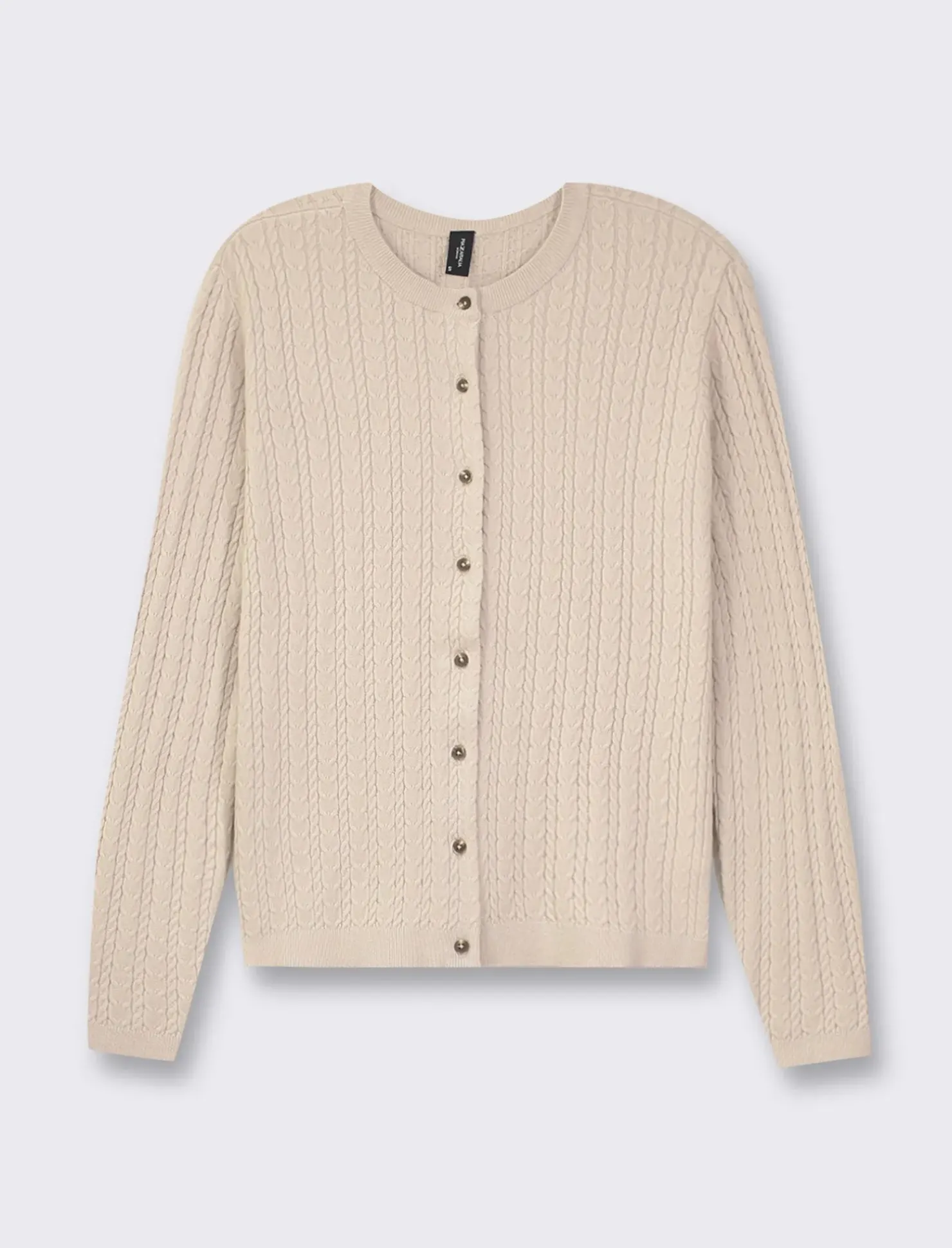 Cardigan in maglia con lavorazione a treccia per donna, un capo versatile e alla moda per completare il tuo look in ogni occasione. Realizzato con materiali di alta qualità, questo cardigan è disponibile in una varietà di colori per adattarsi al tuo stile personale. Il prodotto è di colore Sabbia