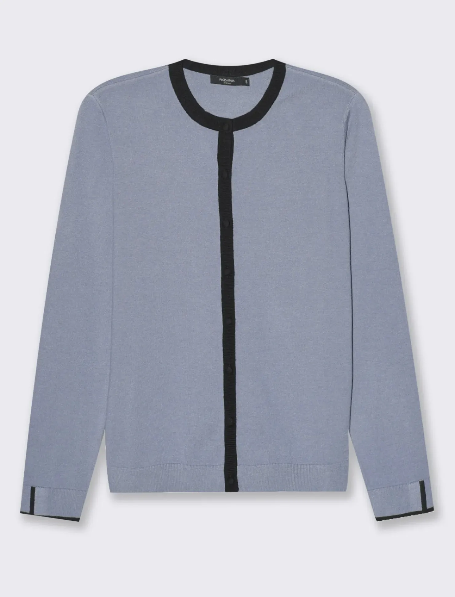 Piazza Italia Cardigan in maglia fine con dettaglio contrasto su tinta e polsi – Celeste Azzurro Flash Sale