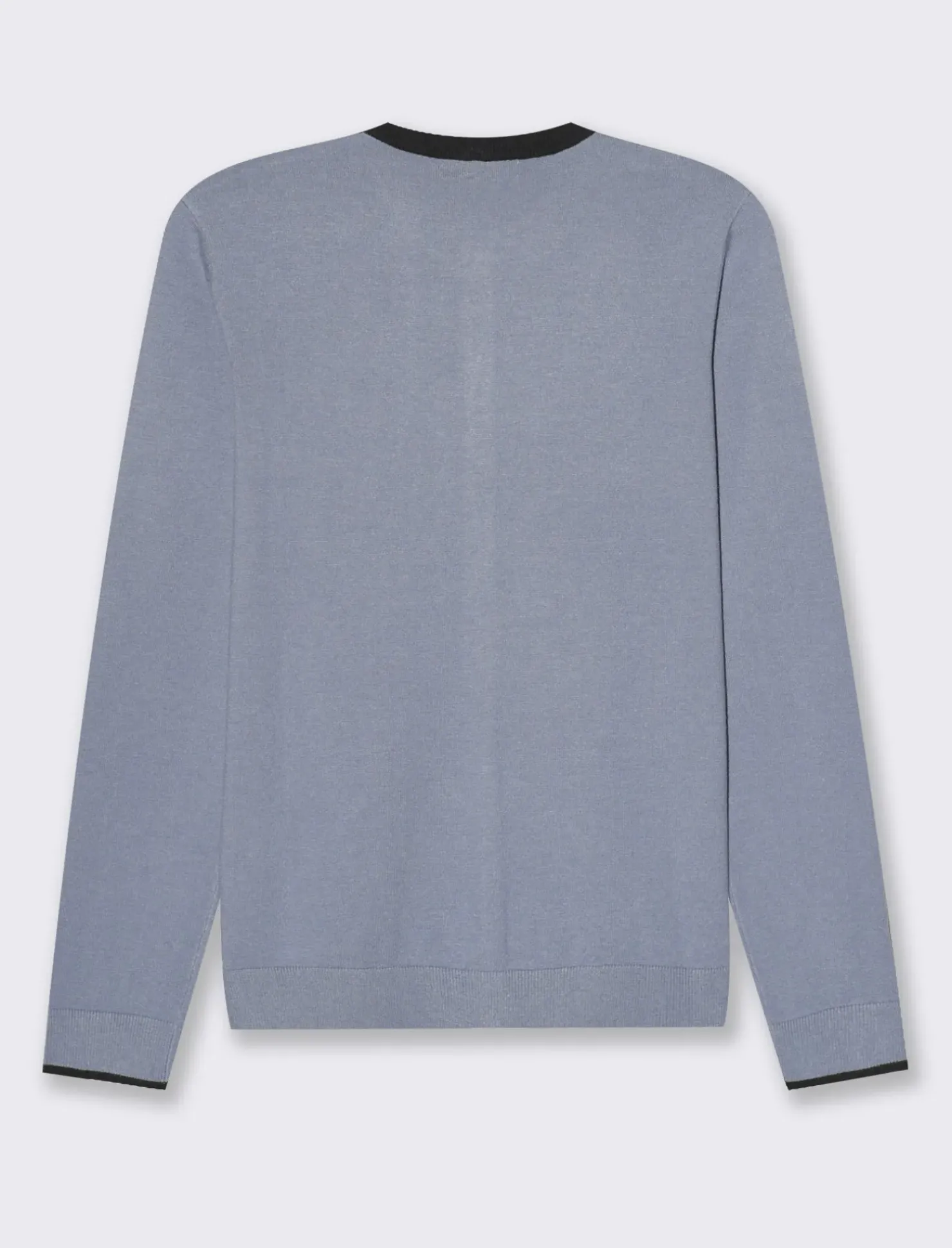 Cardigan in maglia fine con dettaglio contrasto su finta e polsi. Vestibilità comfort, spacchetto su polsi. Disponibile in diversi colori. Ideale per completare il tuo look con stile e comfort. Perfetto per le giornate più fresche, aggiungerà un tocco di eleganza al tuo outfit. Il prodotto è di colore Celeste