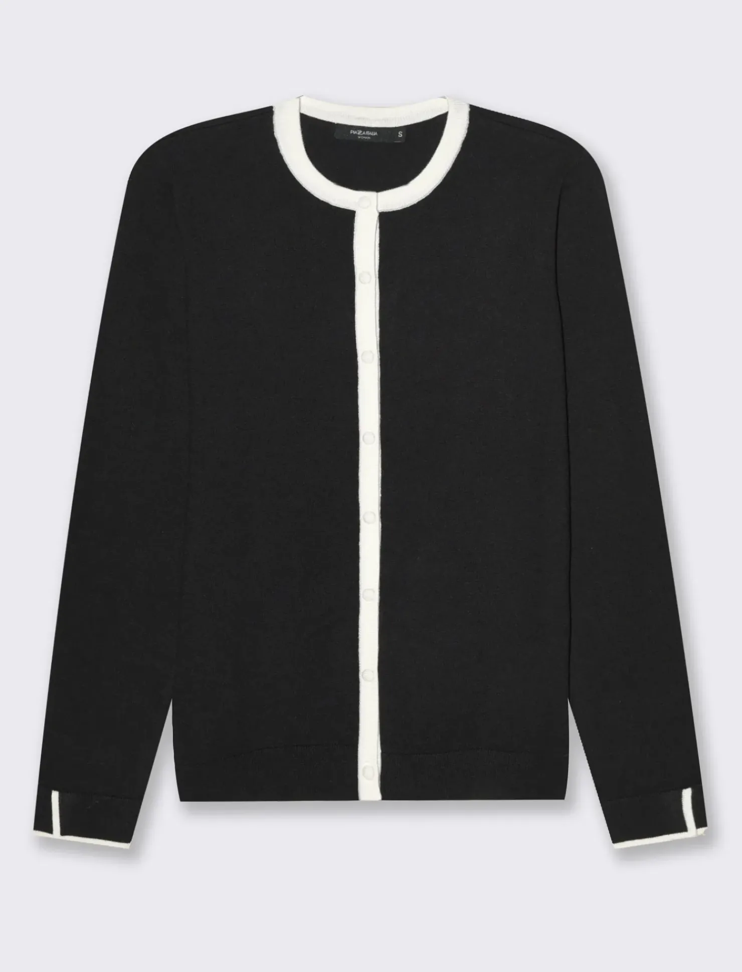 Piazza Italia Cardigan in maglia fine con dettaglio contrasto su tinta e polsi – Nero Shop