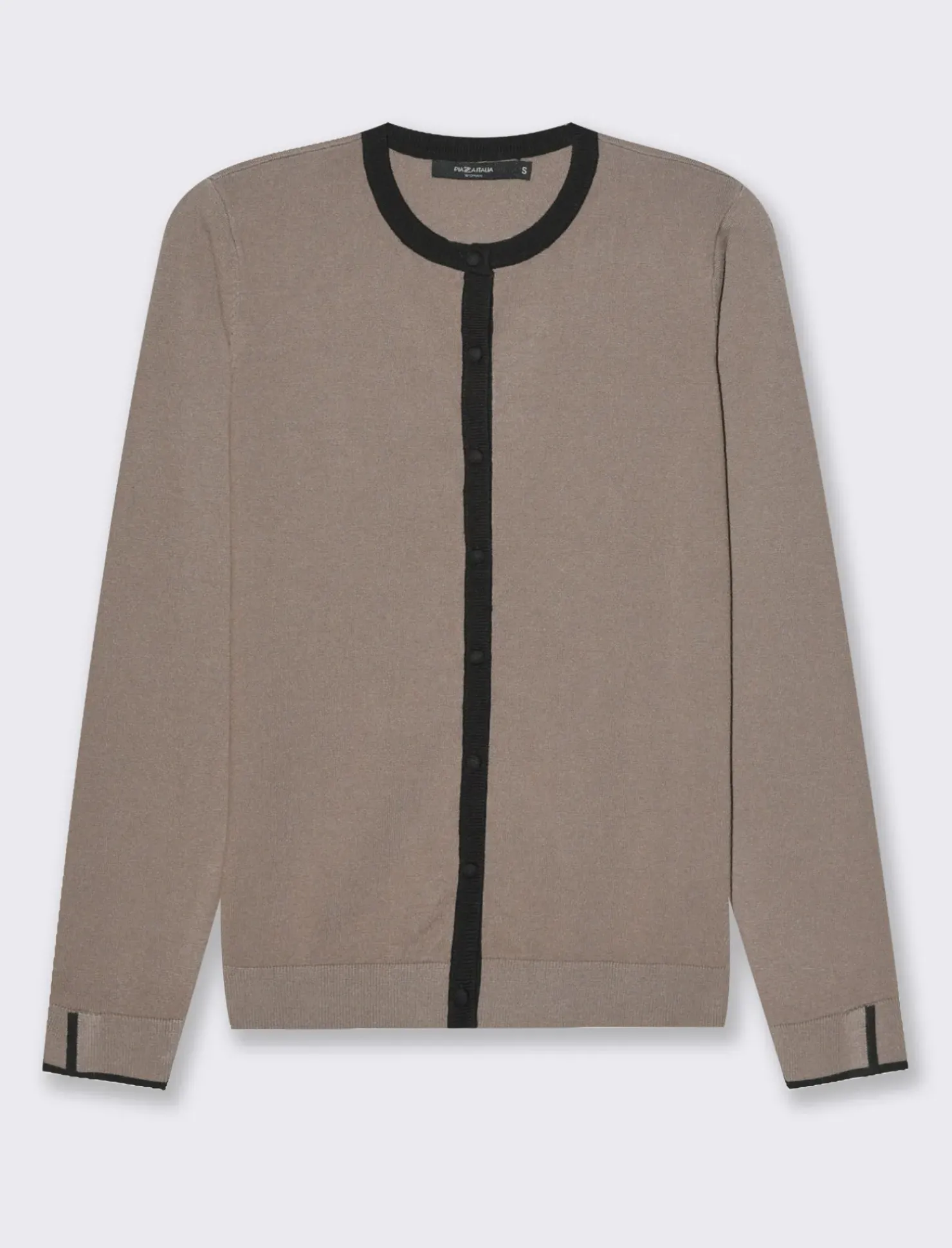 Piazza Italia Cardigan in maglia fine con dettaglio contrasto su tinta e polsi – tortora Grigio Clearance