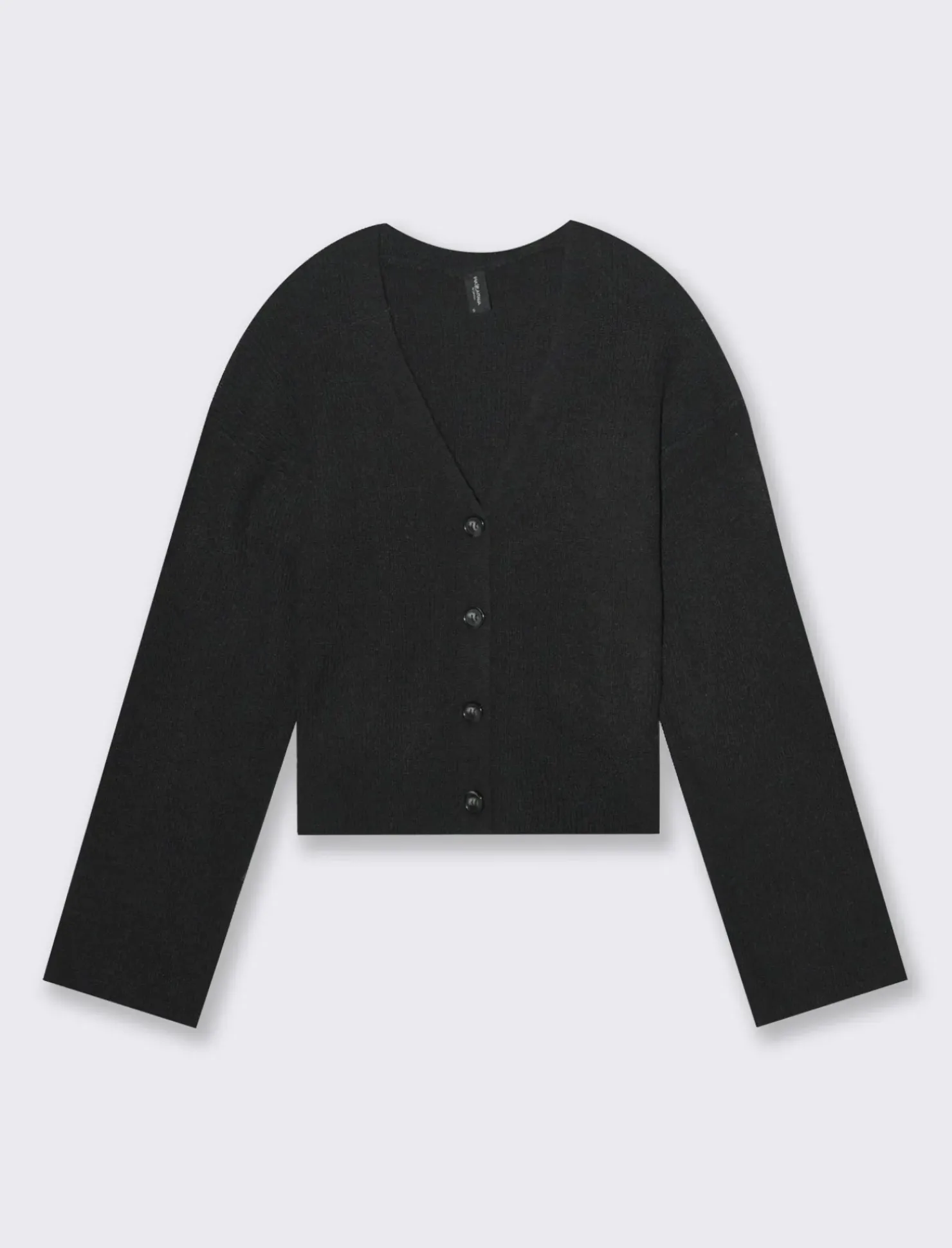 Piazza Italia Cardigan manica lunga con scollo a V e polso svasato – Nero New