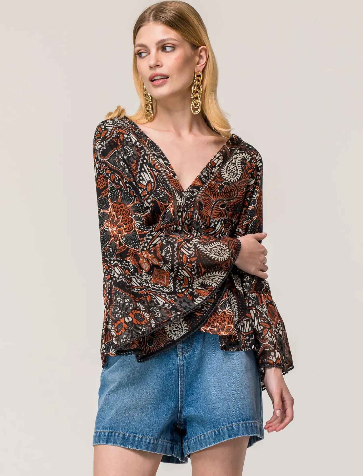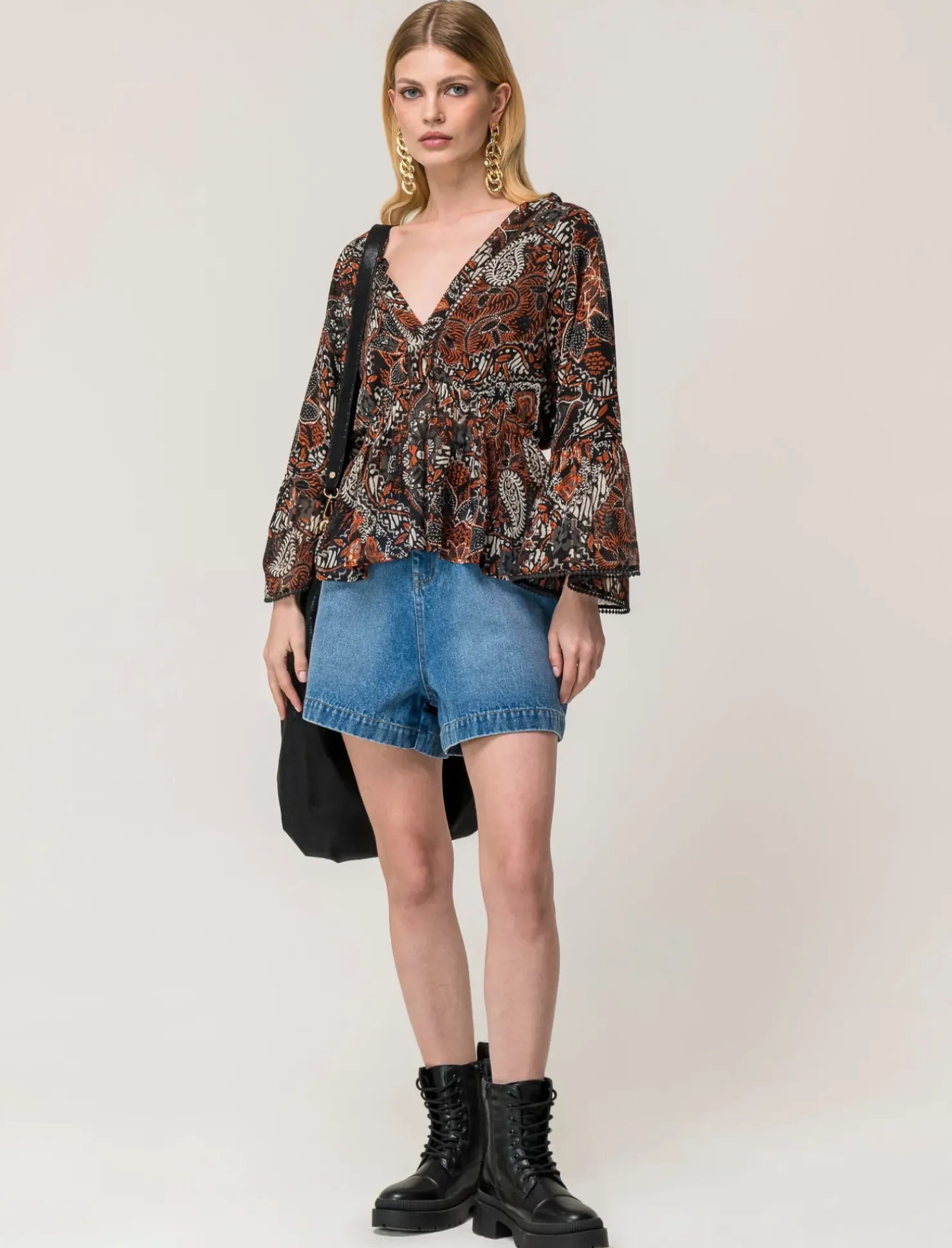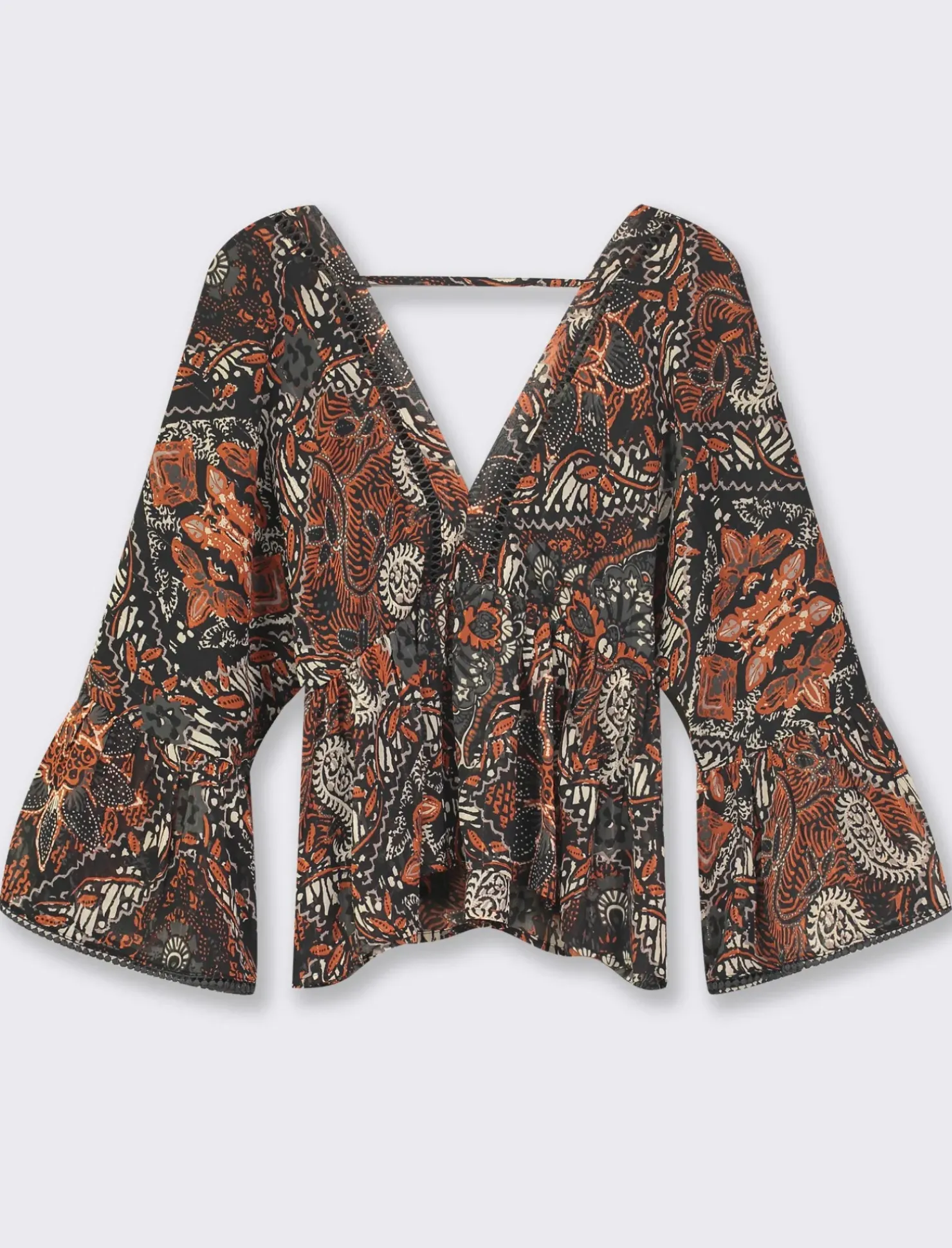 Casacca ampia stampata con scollo a V, perfetta per un look elegante e sofisticato. Realizzata in tessuto leggero, presenta inserti metallizzati che aggiungono un tocco di luminosità al capo. Ideale per un’occasione speciale o per un look da giorno raffinato e alla moda. Il prodotto è di colore var 1