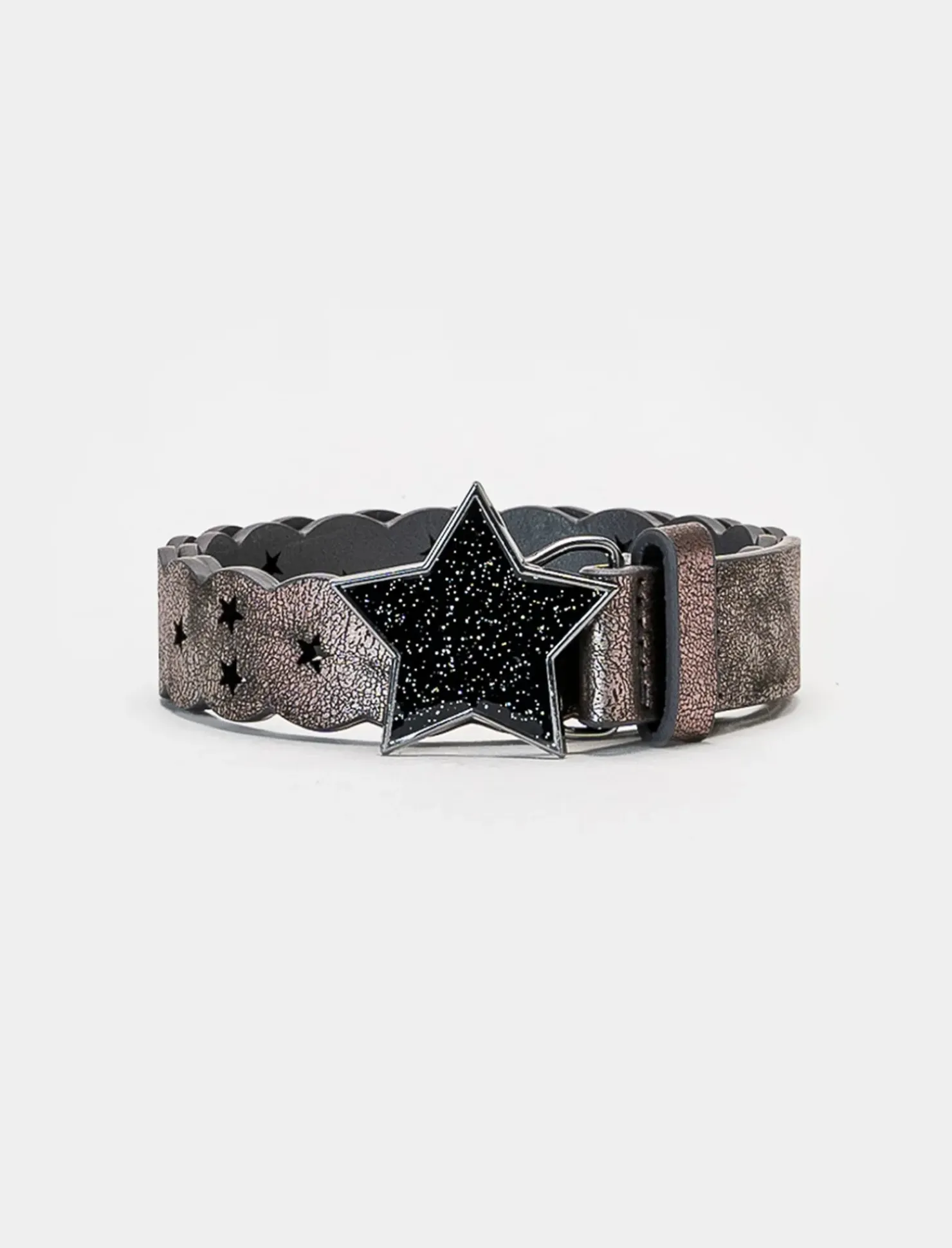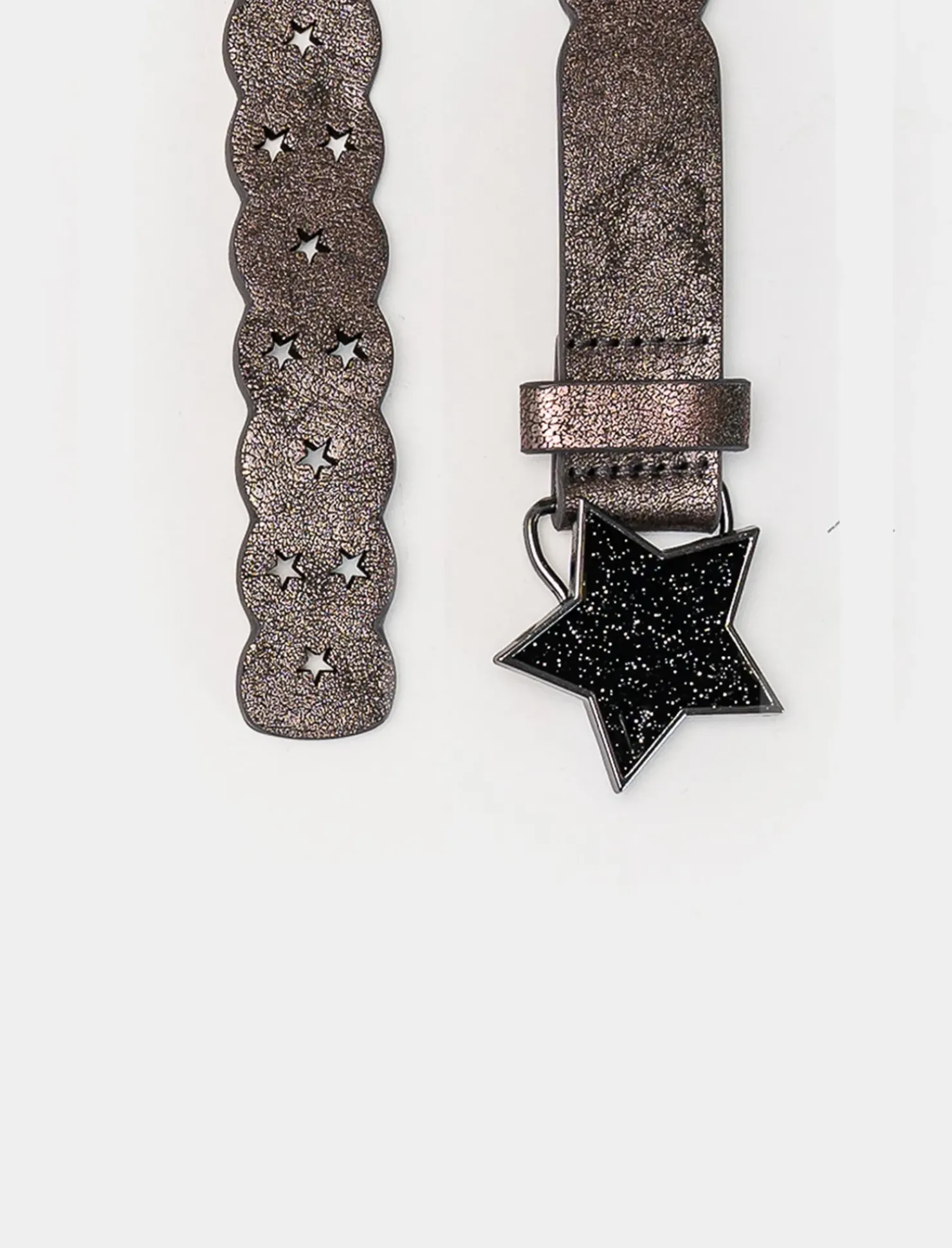 Cintura da bambina con fibbia a forma di stella, perfetta per completare ogni outfit con un tocco di stile. Realizzata con materiali di alta qualità, garantisce resistenza e durata nel tempo. Disponibile in diverse lunghezze per adattarsi perfettamente alla taglia della bambina. Il prodotto è di colore canna di fucile
