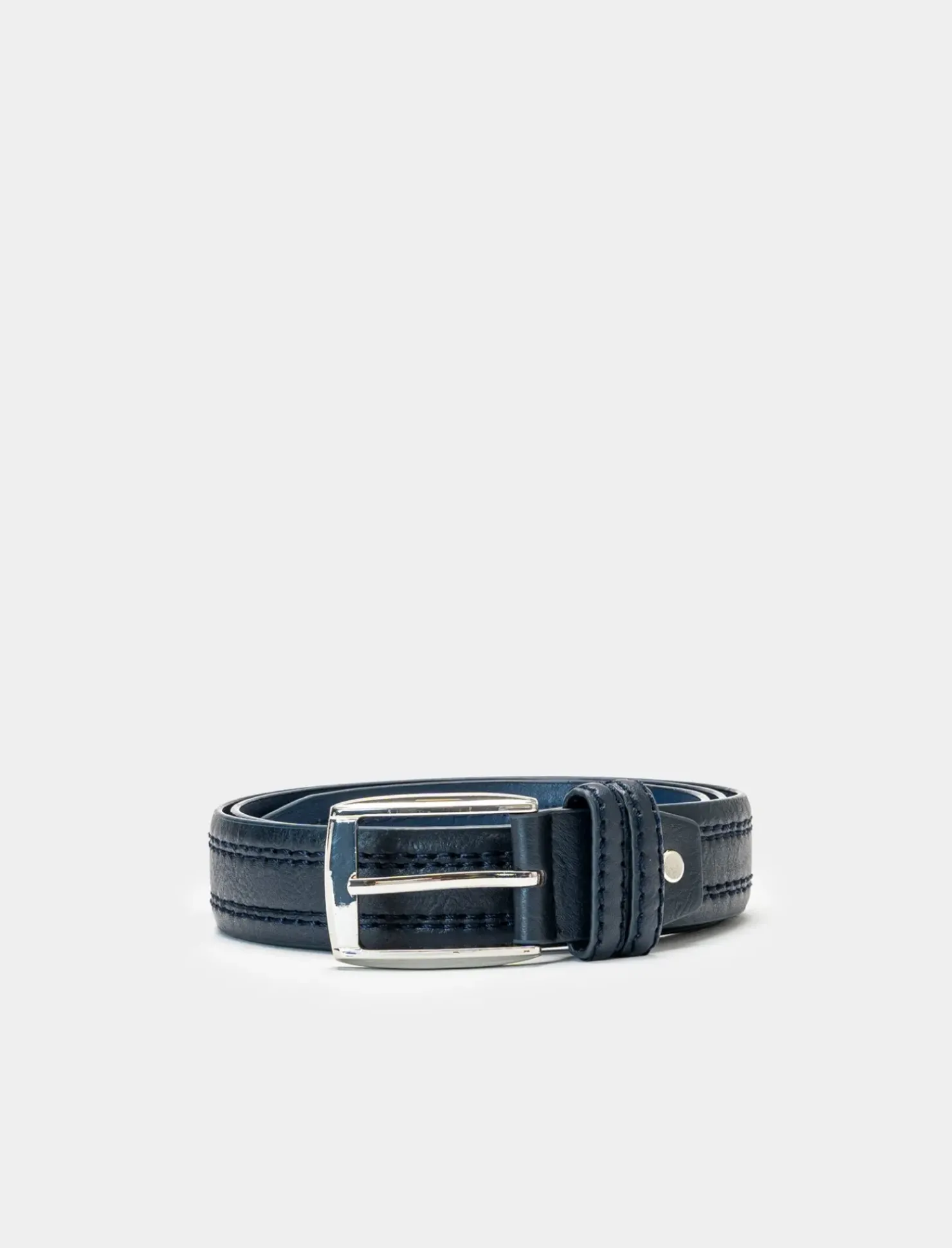 Cintura da uomo con doppia cucitura centrale, perfetta per completare il tuo look con stile. Disponibile in diverse lunghezze per adattarsi perfettamente alla tua taglia. Il prodotto è di colore Blu