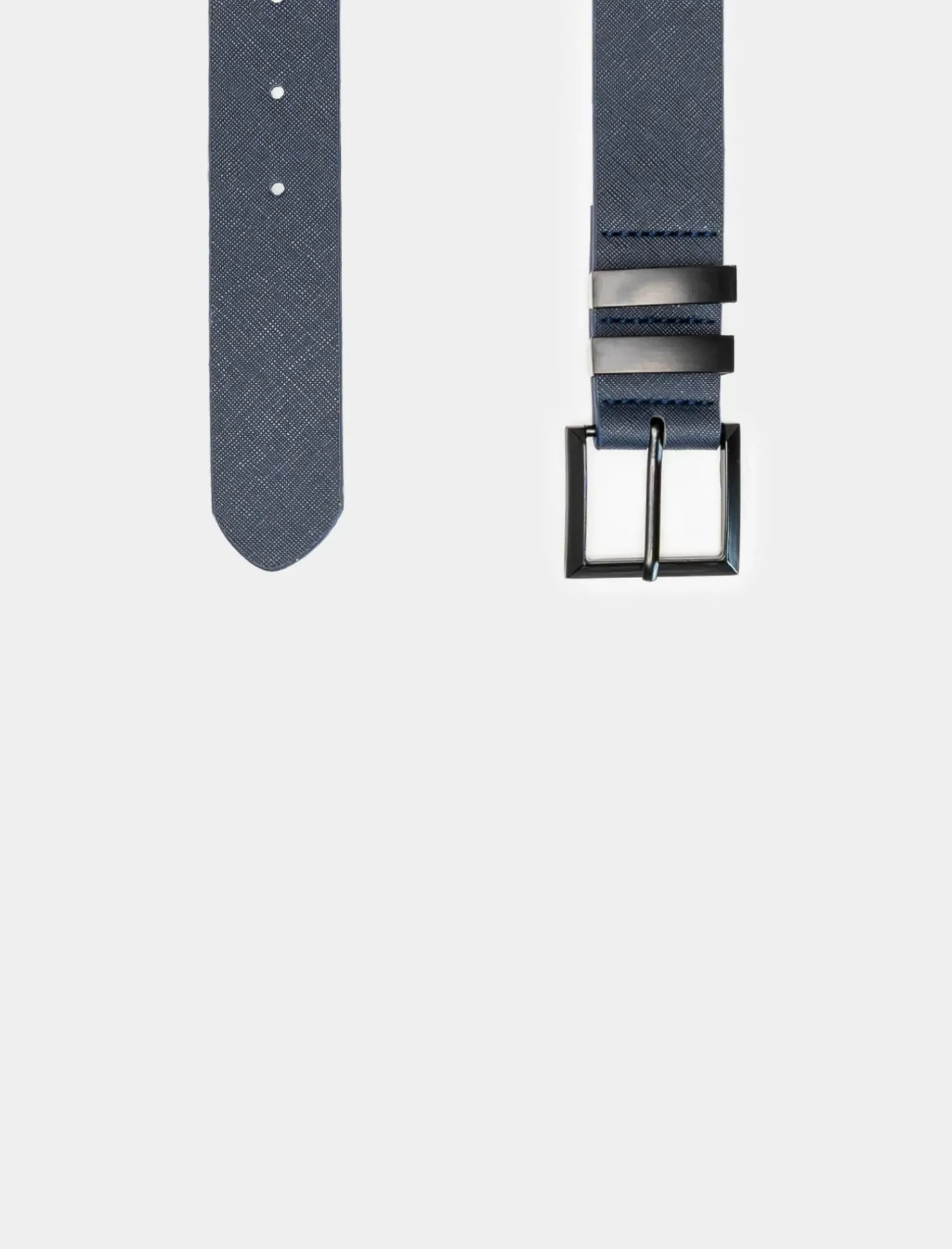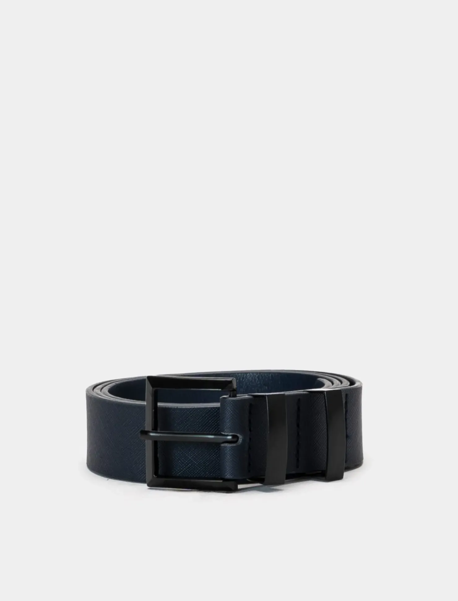 Cintura da uomo in elegante saffiano con fibbia smaltata opaca da 3,5 cm. Disponibile nelle taglie da 110 a 115 cm. Completa il tuo look con questo accessorio di classe e stile. Perfetta per ogni occasione, dalla più formale alla più casual. Il prodotto è di colore Blu