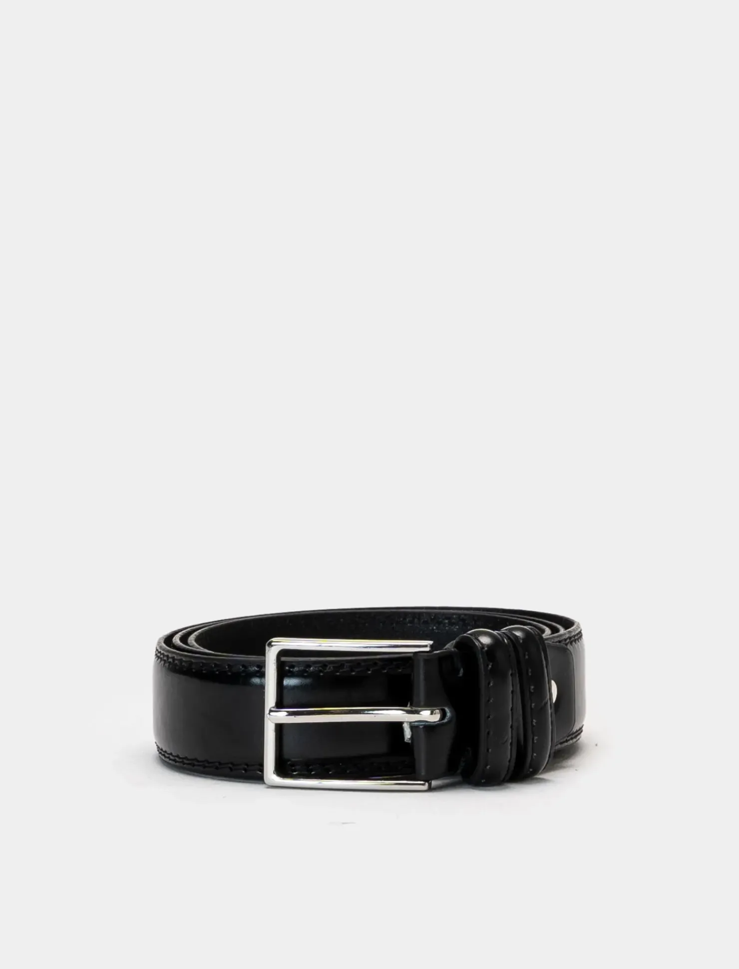 Cintura da uomo in pelle liscia, perfetta per un look classico e sofisticato. Con un’altezza di 3,5 cm e una lunghezza di 110-115 cm, è l’accessorio ideale per completare il tuo outfit in modo elegante e raffinato. Il prodotto è di colore Nero