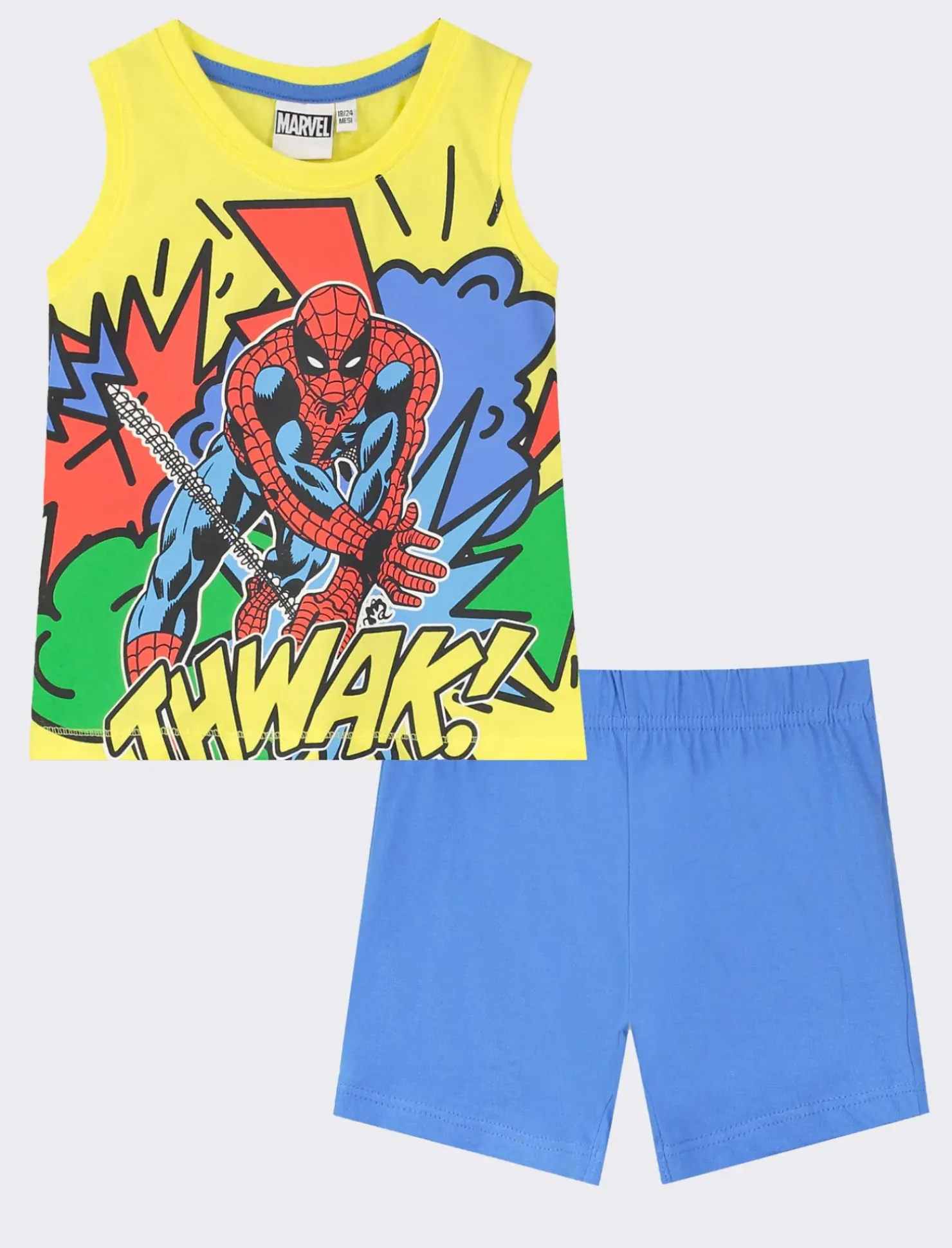 Il completo canotta e pantaloncini con stampa di personaggi è l’ideale per i piccoli fashionisti in erba. Disponibile in due varianti di colore vivaci, questo set stampato giromanica combina comodità e stile in un’unica soluzione. Questo outfit renderà ogni bambino il protagonista indiscusso della scena. Acquista ora e regala al tuo bambino un look unico e alla moda. Il prodotto è di colore Giallo