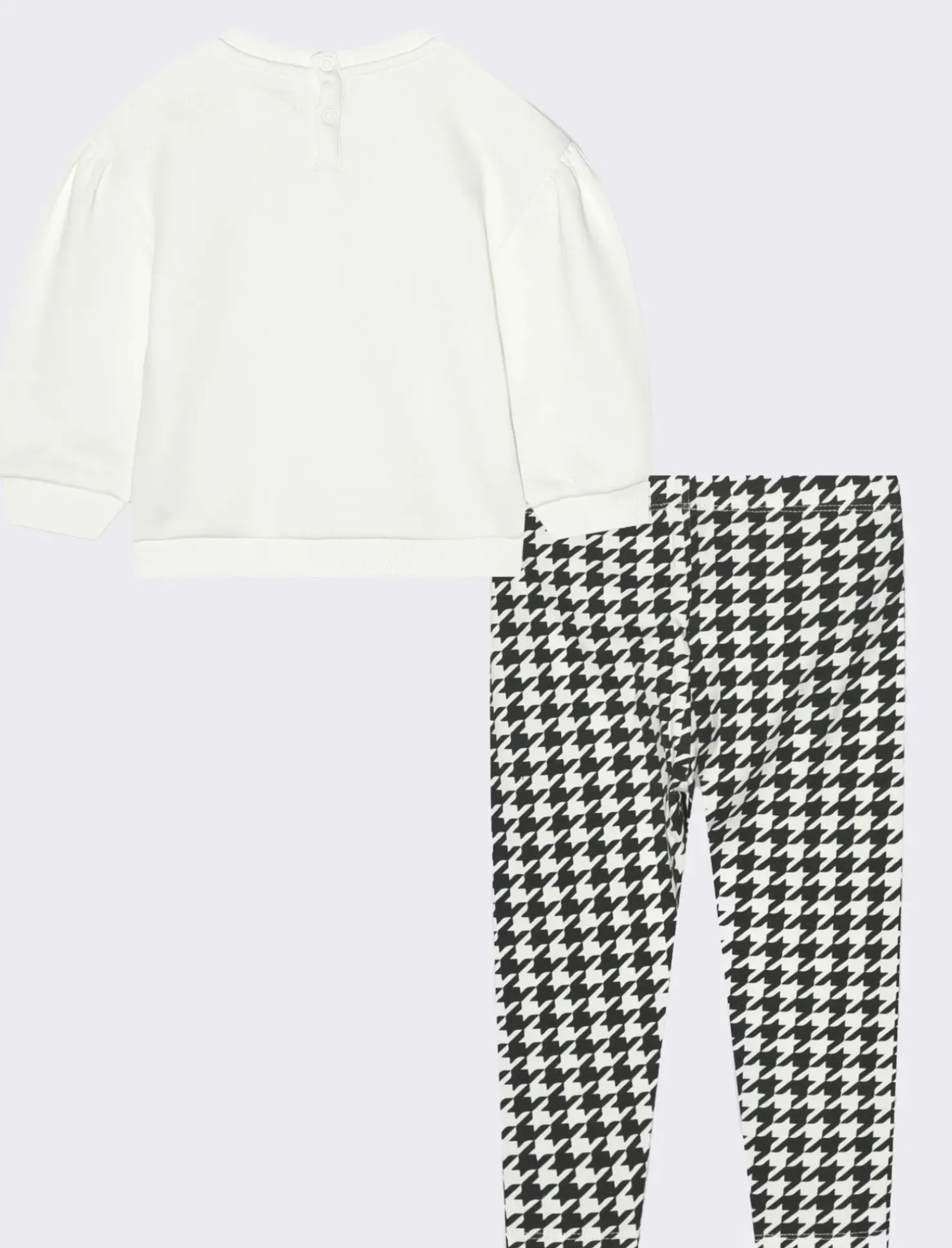 Set due pezzi che unisce comfort e stile, composto da una felpa a manica lunga e girocollo e leggings stampati. La felpa, realizzata in un tessuto morbido e accogliente, presenta una stampa frontale che aggiunge un tocco di personalità e vivacità al capo. I leggings, con una stampa coordinata, sono realizzati in un tessuto elastico che garantisce una vestibilità aderente e confortevole, seguendo le linee del corpo con naturalezza. Questo set è perfetto per un look casual e alla moda, ideale per le attività quotidiane o per un’uscita informale.Il presente prodotto è conforme al rischio generico di sicurezza di cui allart.5 del Regolamento Europeo 988/2023. Il prodotto è di colore Bianco panna