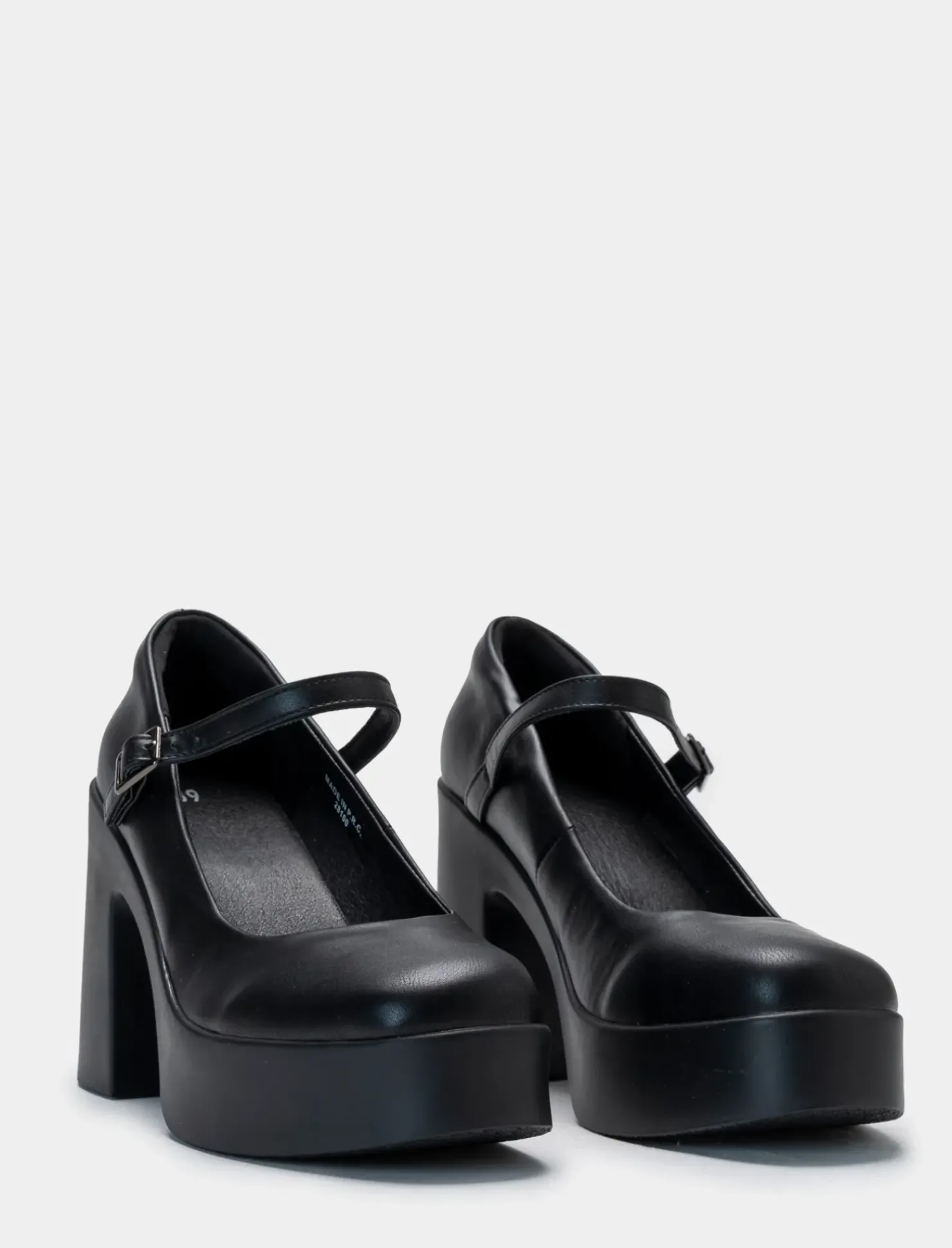 Piazza Italia Décolletè con cinturino e tacco largo e plateau – Nero Cheap