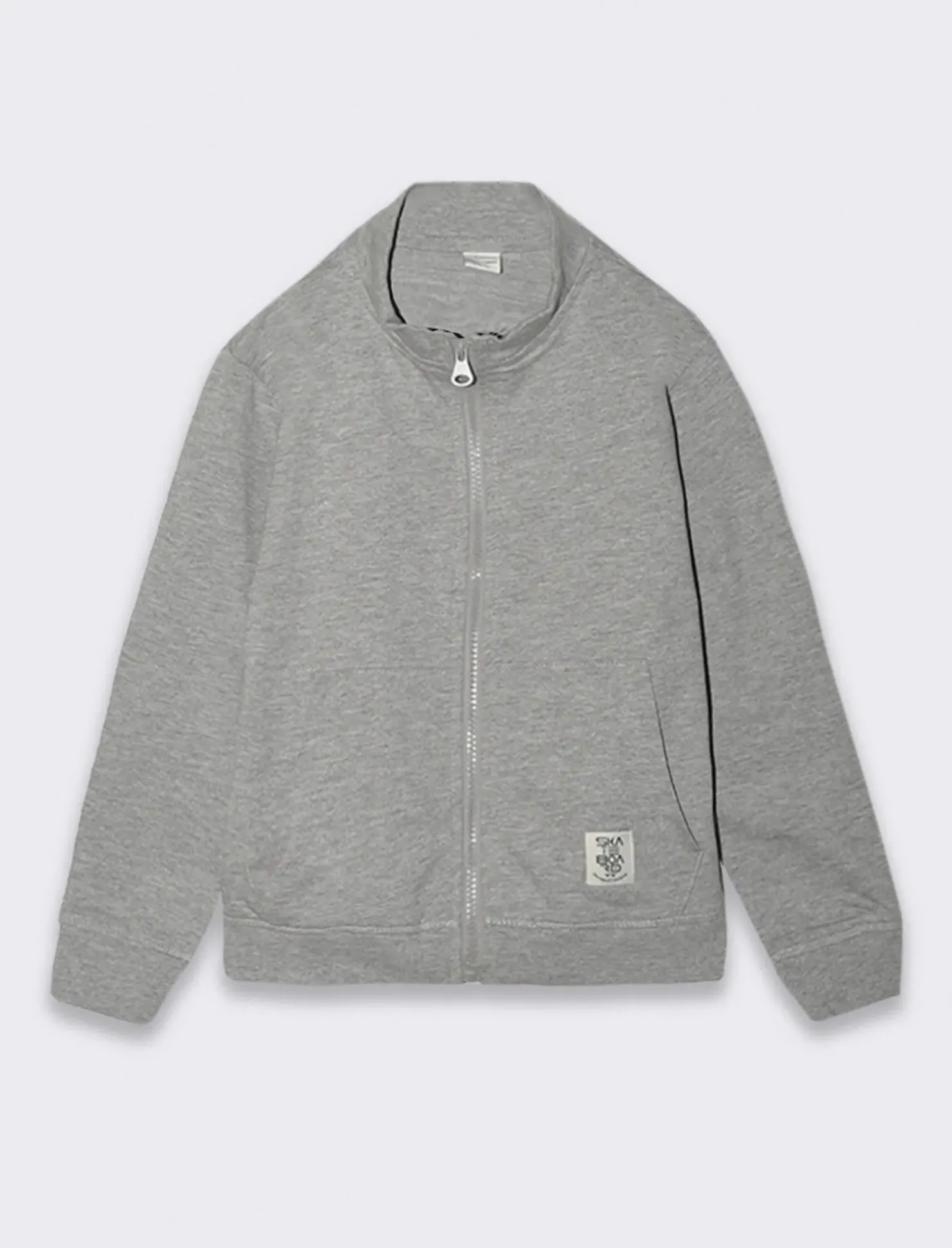 Felpa con zip per bambino, perfetta per un look casual e comodo. Il collo in rib assicura un tocco di stile in più. Disponibile in tre diverse varianti di colore, ideale per ogni occasione. Un capo versatile e alla moda per i più piccoli. Il prodotto è di colore Grigio mel.