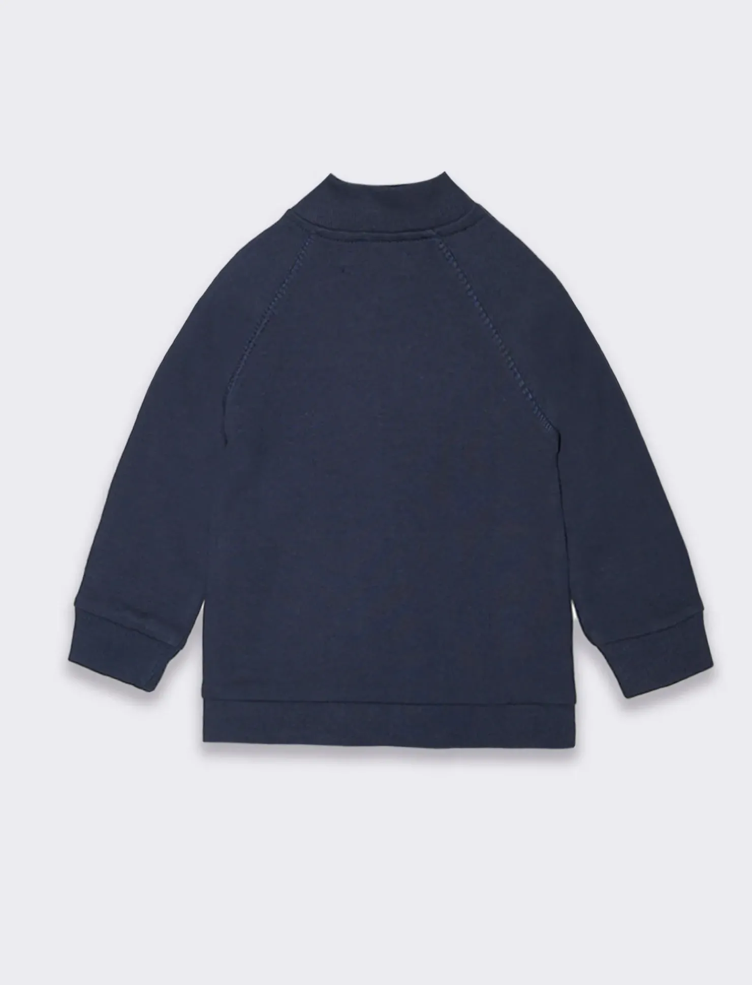 Felpa con zip per neonato realizzata in morbido cotone, perfetta per tenere al caldo i più piccoli. Il collo e il fondo manica in costina assicurano una vestibilità comoda e aderente. Il dettaglio dell’etichetta stile varsity conferisce un tocco di stile college alla mise del tuo bambino. Il prodotto è di colore Blu