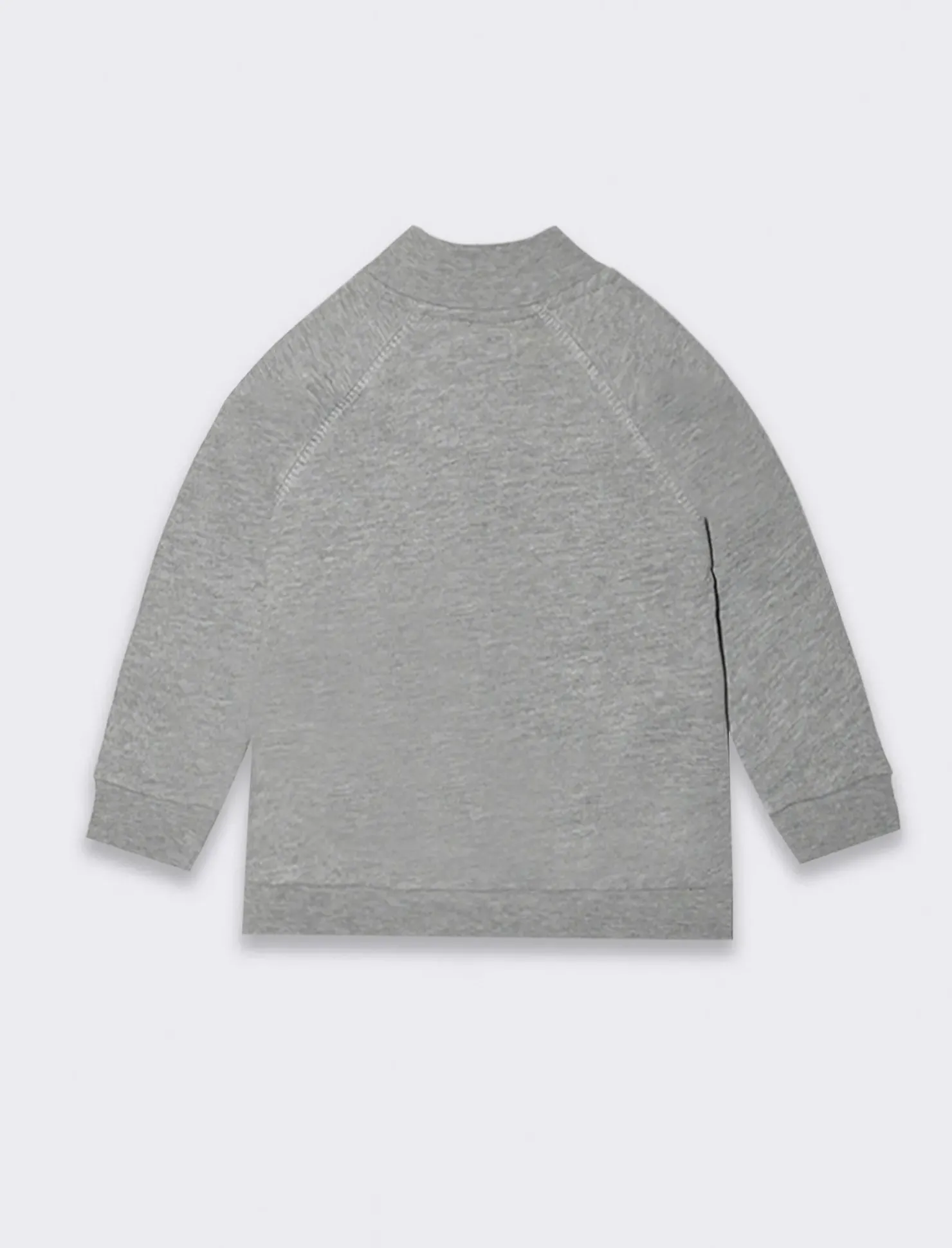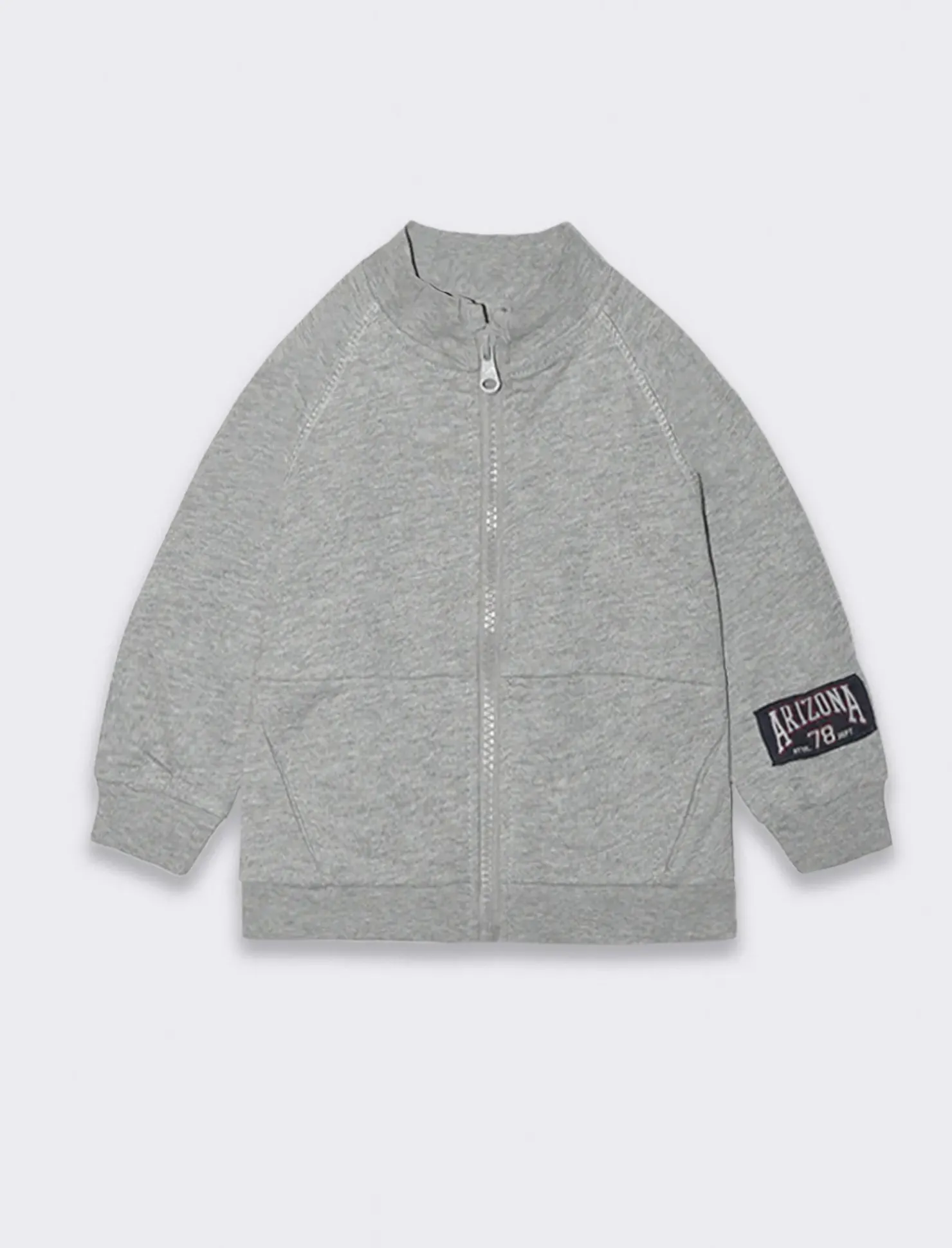 Felpa con zip per neonato realizzata in morbido cotone, perfetta per tenere al caldo i più piccoli. Il collo e il fondo manica in costina assicurano una vestibilità comoda e aderente. Il dettaglio dell’etichetta stile varsity conferisce un tocco di stile college alla mise del tuo bambino. Il prodotto è di colore Grigio mel.