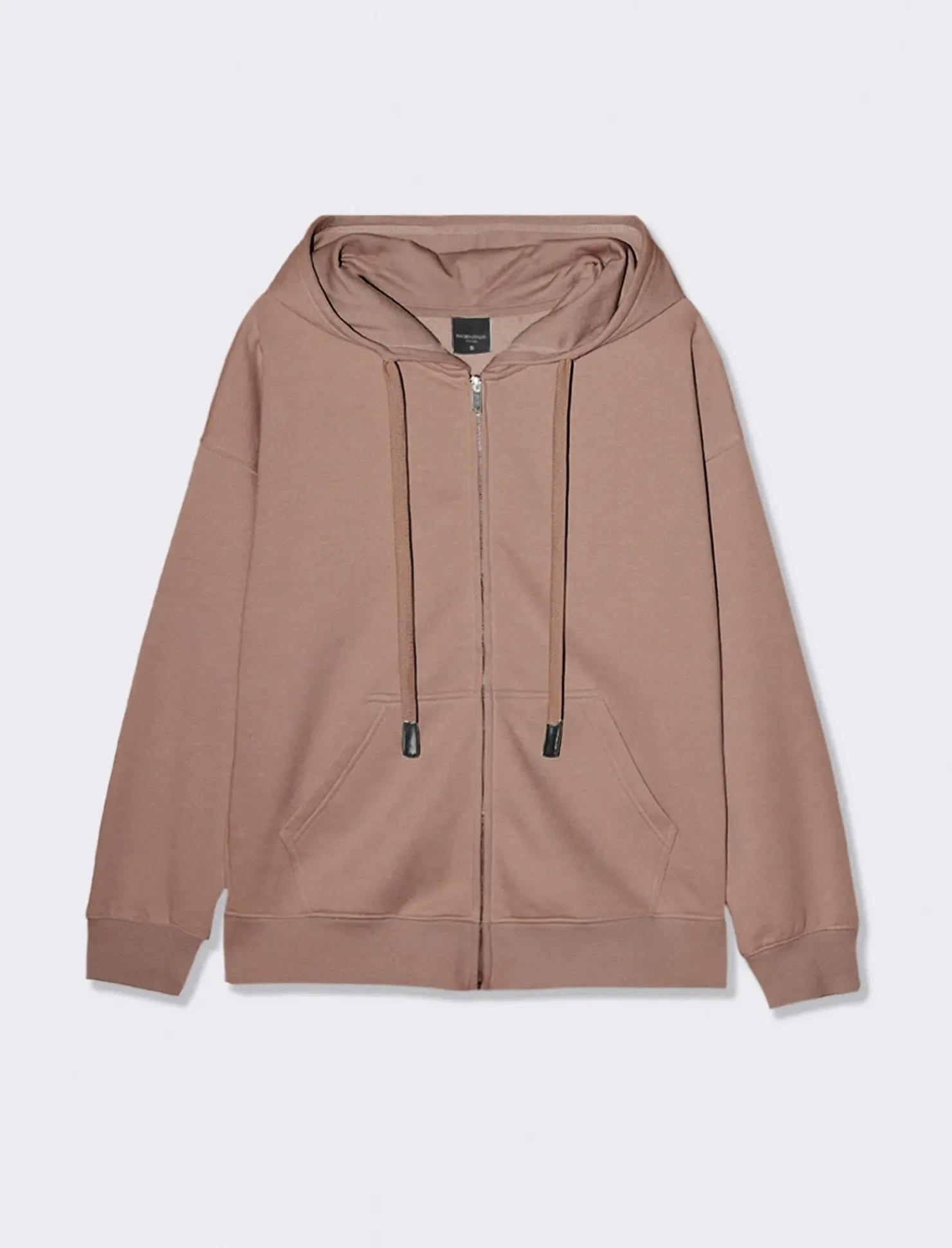 Felpa basica in garza leggera per donna, perfetta per un look casual e comodo. Dotata di chiusura a zip, cappuccio foderato e pratica tasca sul davanti. Ideale per le giornate più fresche, questa felpa è un must-have per il tuo guardaroba. Il prodotto è di colore Grigio castoro