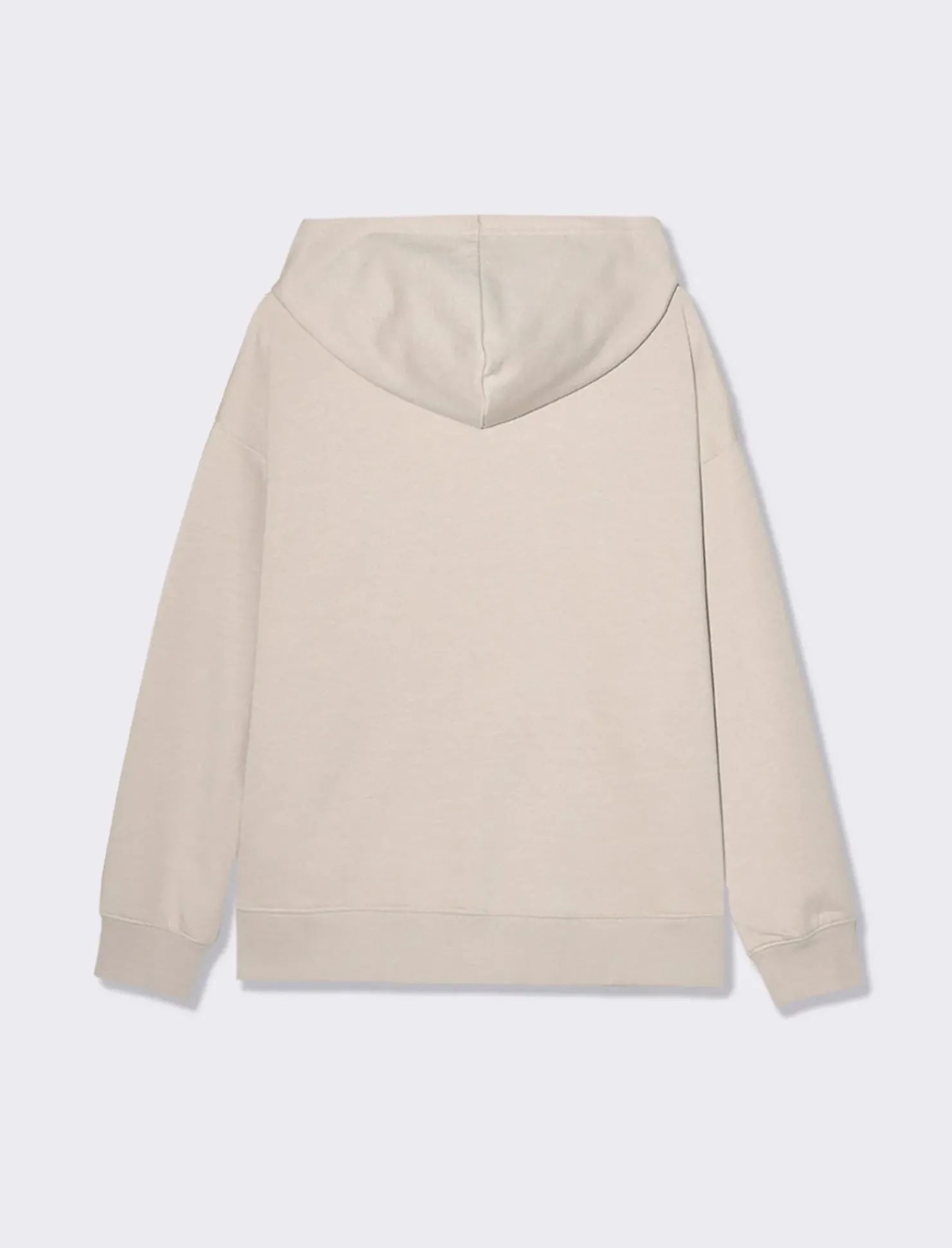 Felpa basica in garza leggera per donna, perfetta per un look casual e comodo. Dotata di chiusura a zip, cappuccio foderato e pratica tasca sul davanti. Ideale per le giornate più fresche, questa felpa è un must-have per il tuo guardaroba. Il prodotto è di colore Sabbia