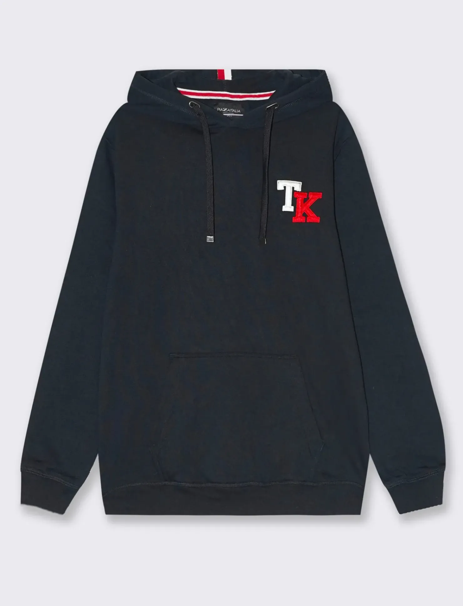 Piazza Italia Felpa cappuccio in misto cotone garzato regular fit con ricamo sul davanti – Blu Store