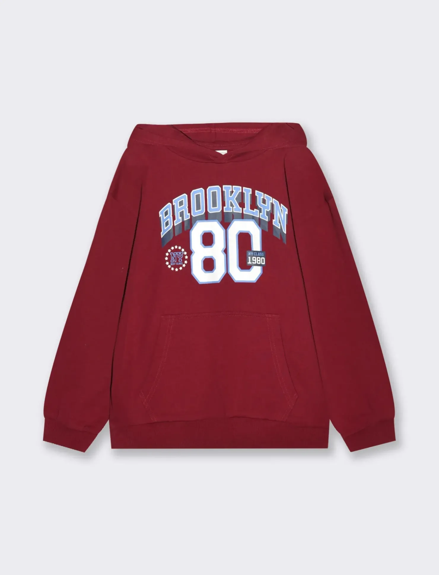 Piazza Italia Felpa con cappuccio e stampa frontale – Bordeaux Rosso Shop