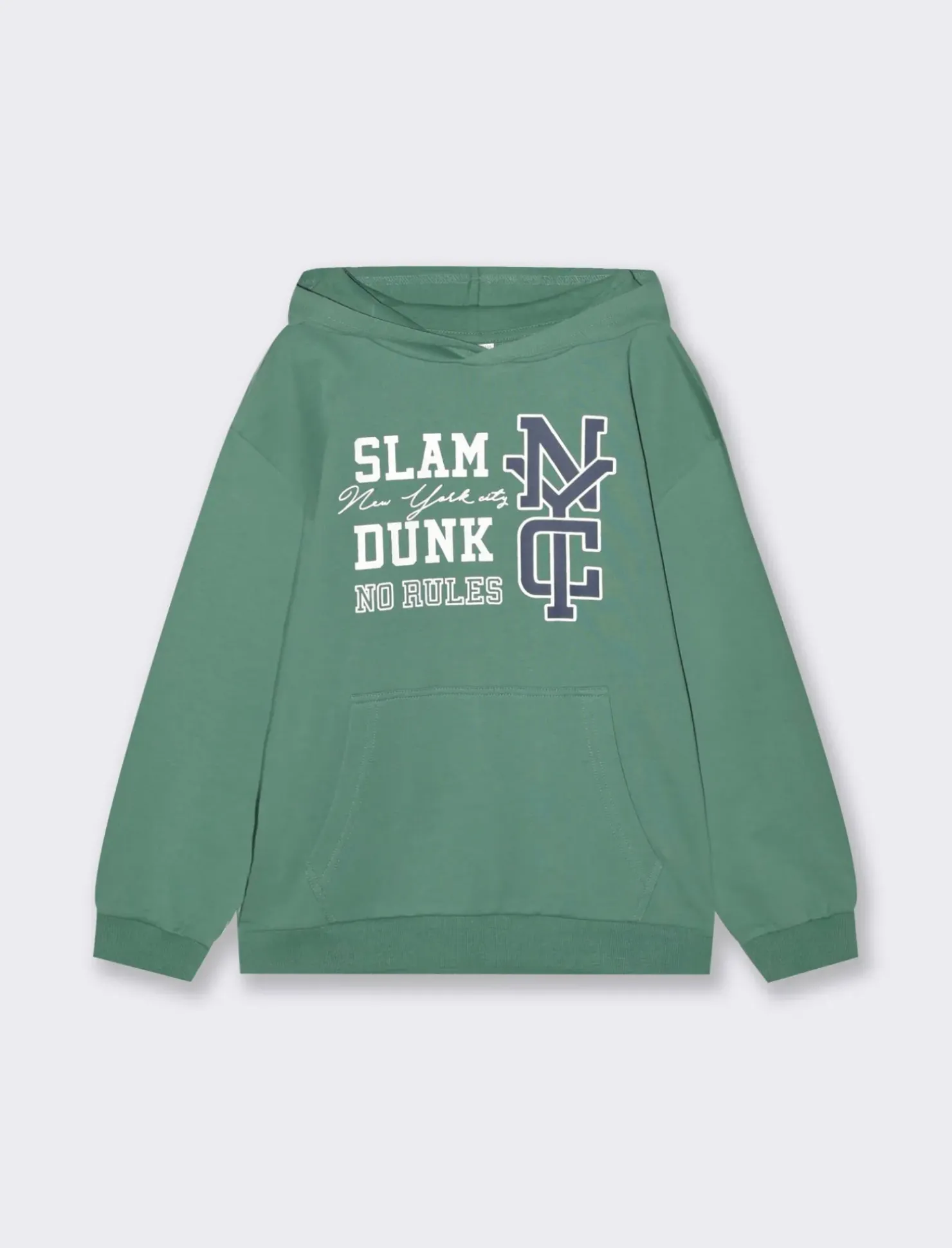 Piazza Italia Felpa con cappuccio e stampa frontale – Verde Sale