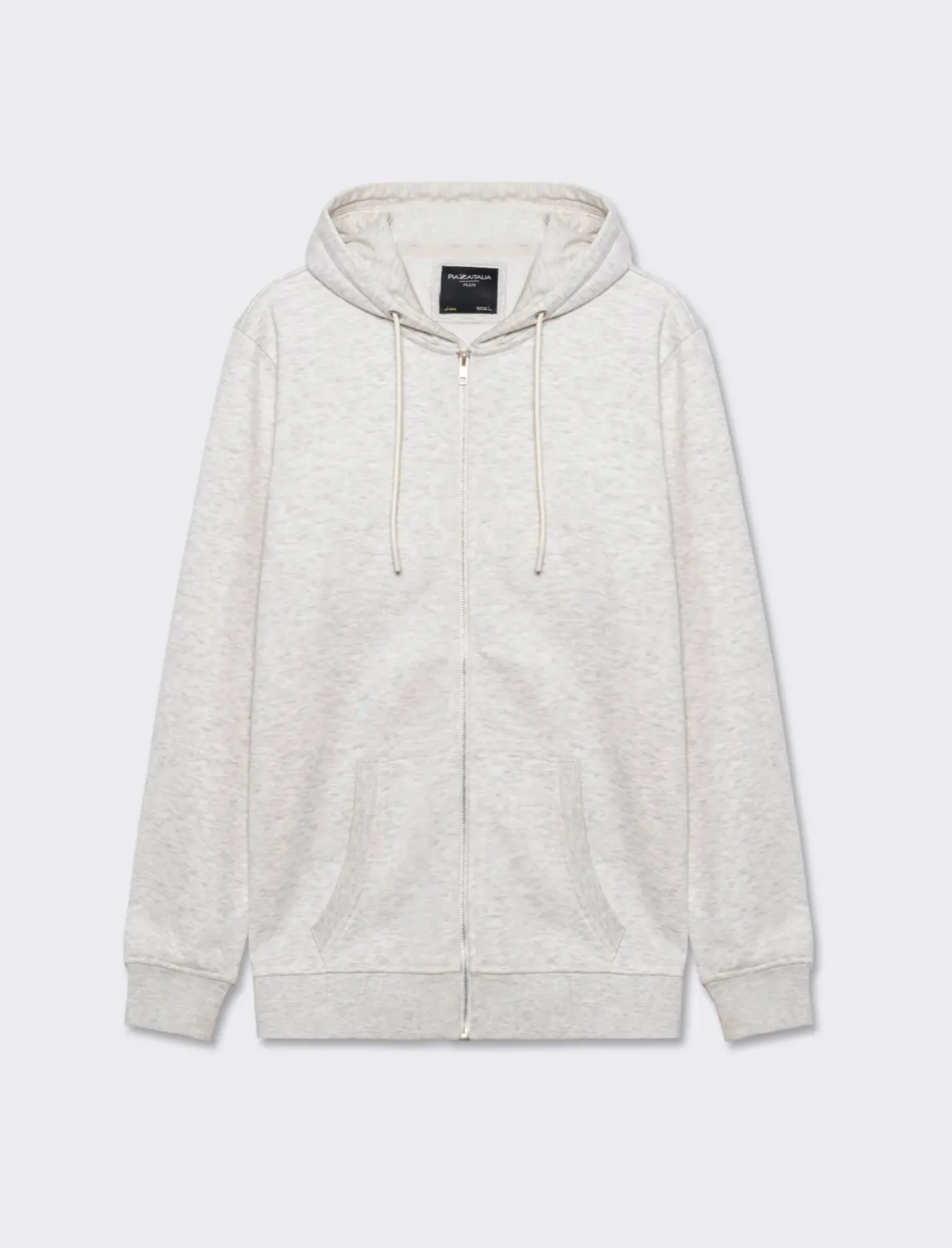 Felpa basic con cappuccio e cerniera, perfetta per un look casual e comodo. Realizzata in morbido misto cotone garzato, garantisce un comfort ottimale. Il taglio regular fit si adatta perfettamente alla silhouette maschile, mentre il collo con cappuccio regolabile e le maniche lunghe la rendono adatta a qualsiasi occasione. La pratica tasca anteriore a marsupio e la chiusura frontale con cerniera la rendono funzionale e versatile. Il prodotto è di colore Grigio mel.