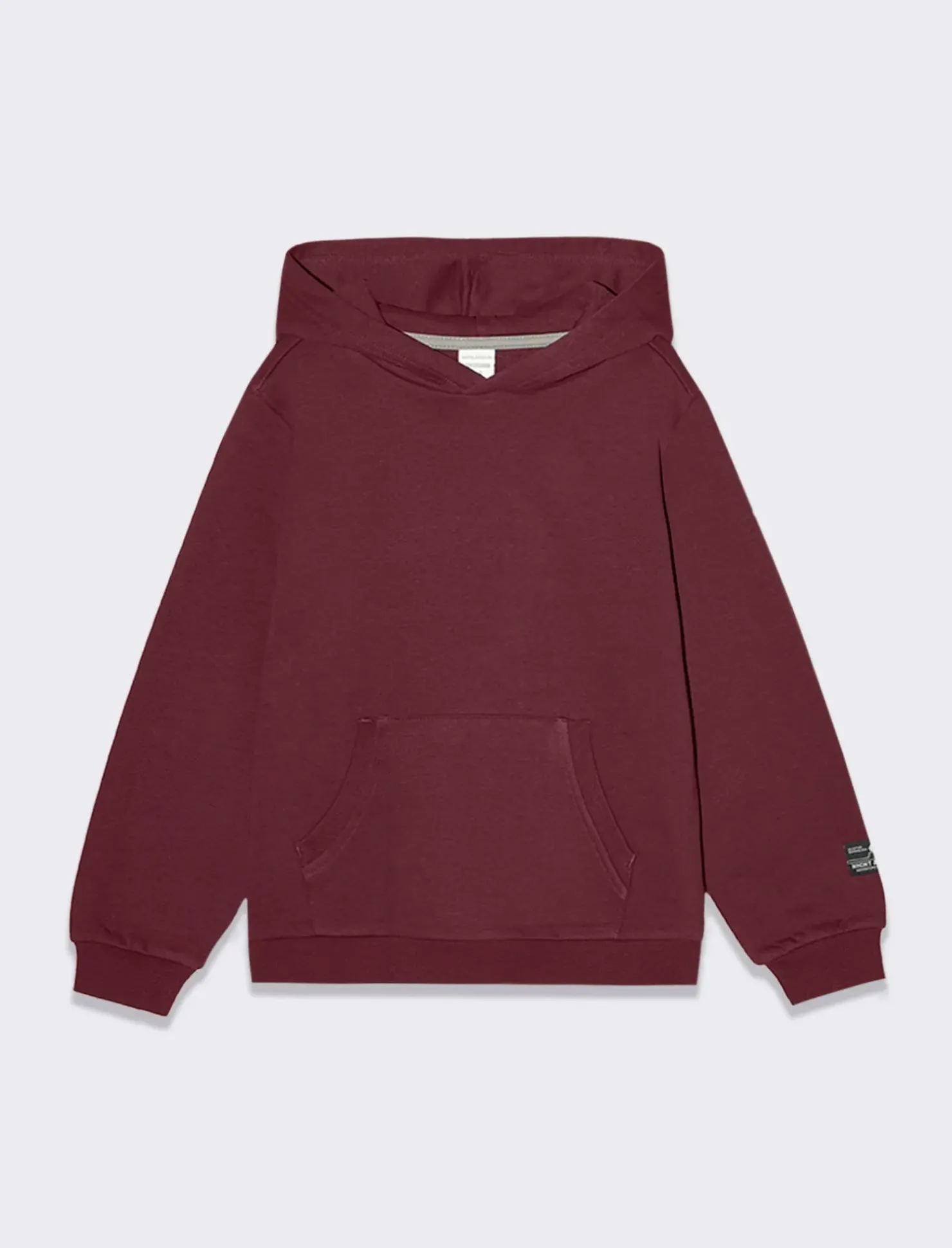 Piazza Italia Felpa con cappuccio tinta unita – Bordeaux Rosso Fashion