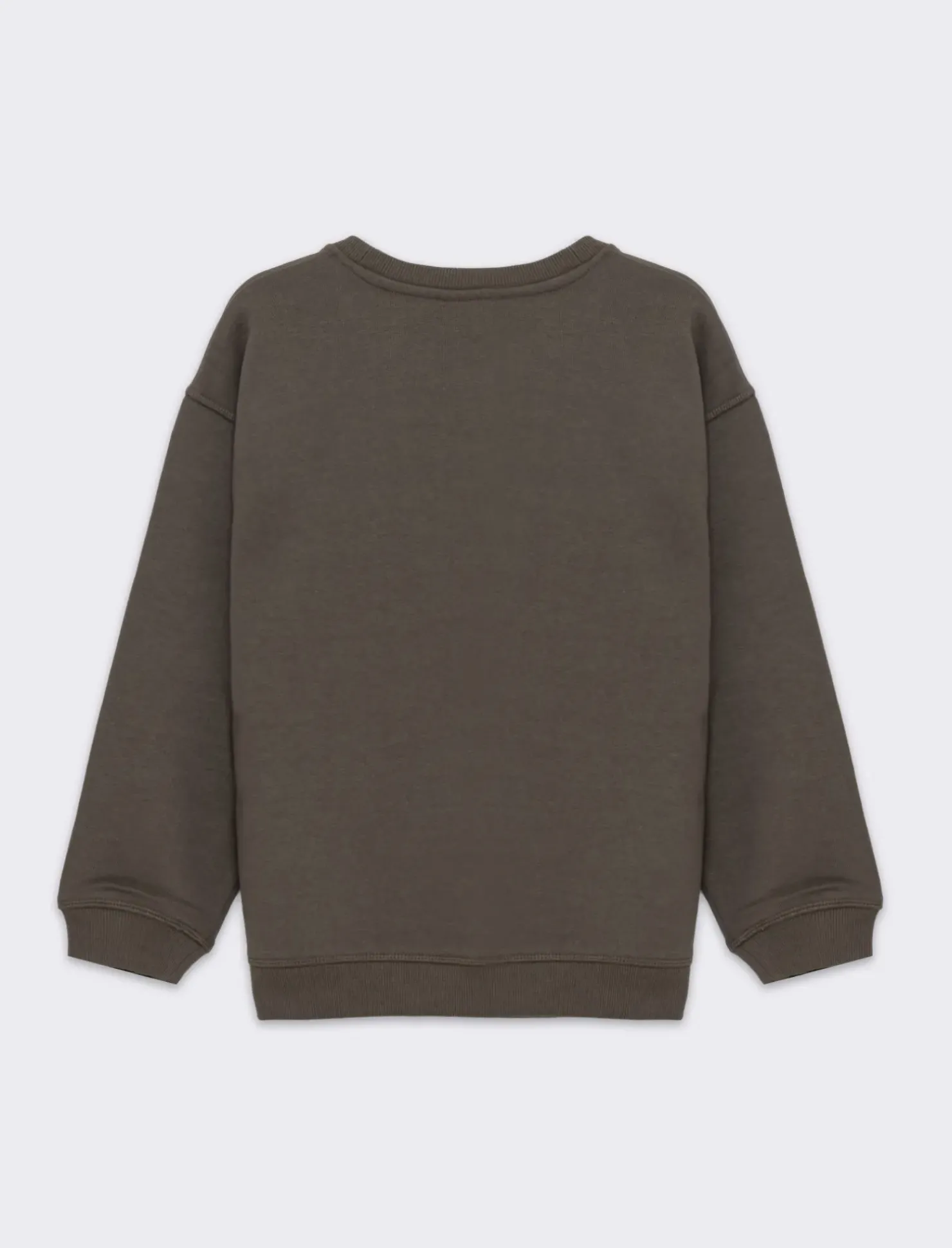 Felpa garzata da bambino girocollo con patch in velluto sul davanti, costina al fondo e ai polsi, stile college perfetta per il tempo libero. Il prodotto è di colore Marrone