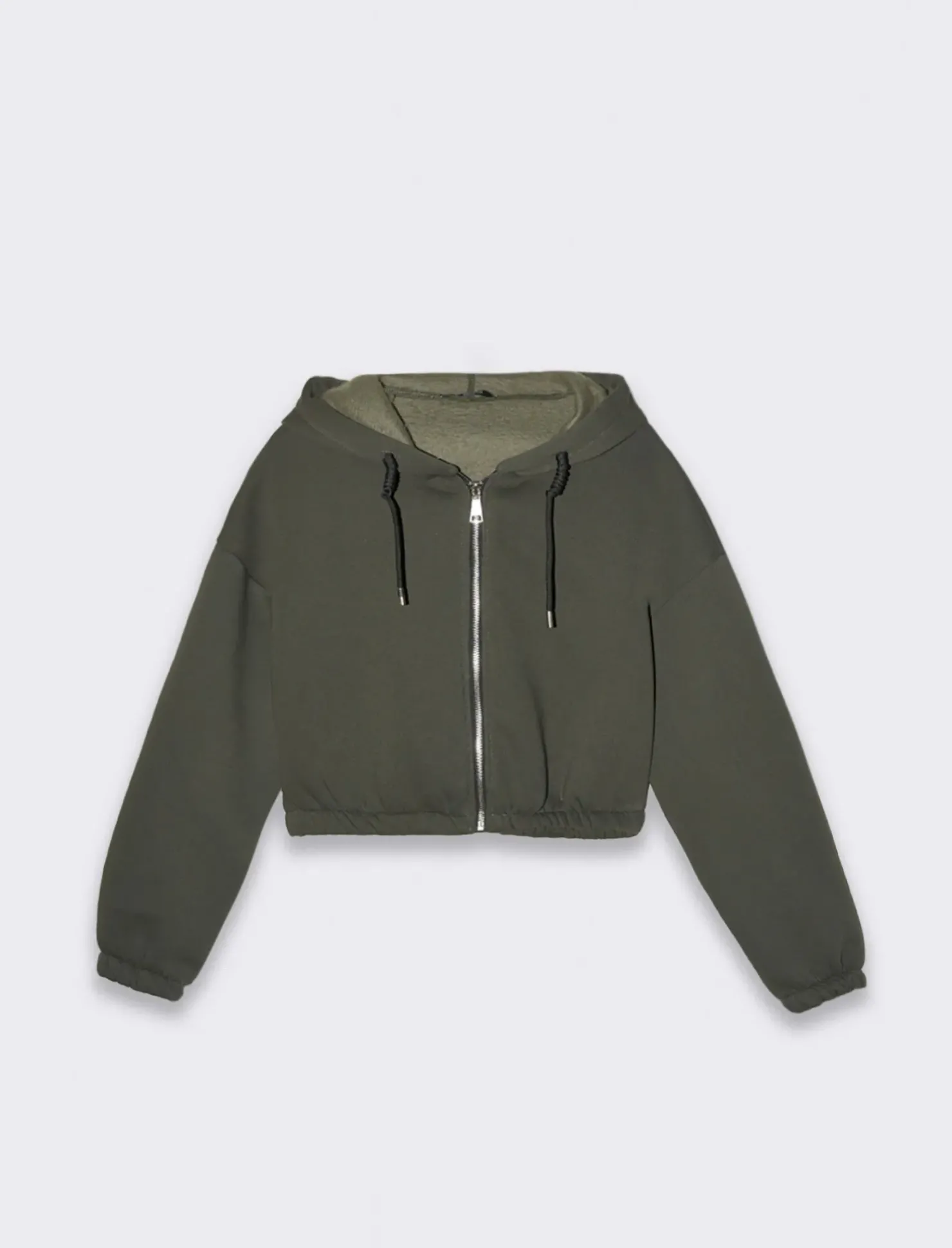 Piazza Italia Felpa cropped da donna con cappuccio e coulisse con chiusura con zip – Verde Outlet