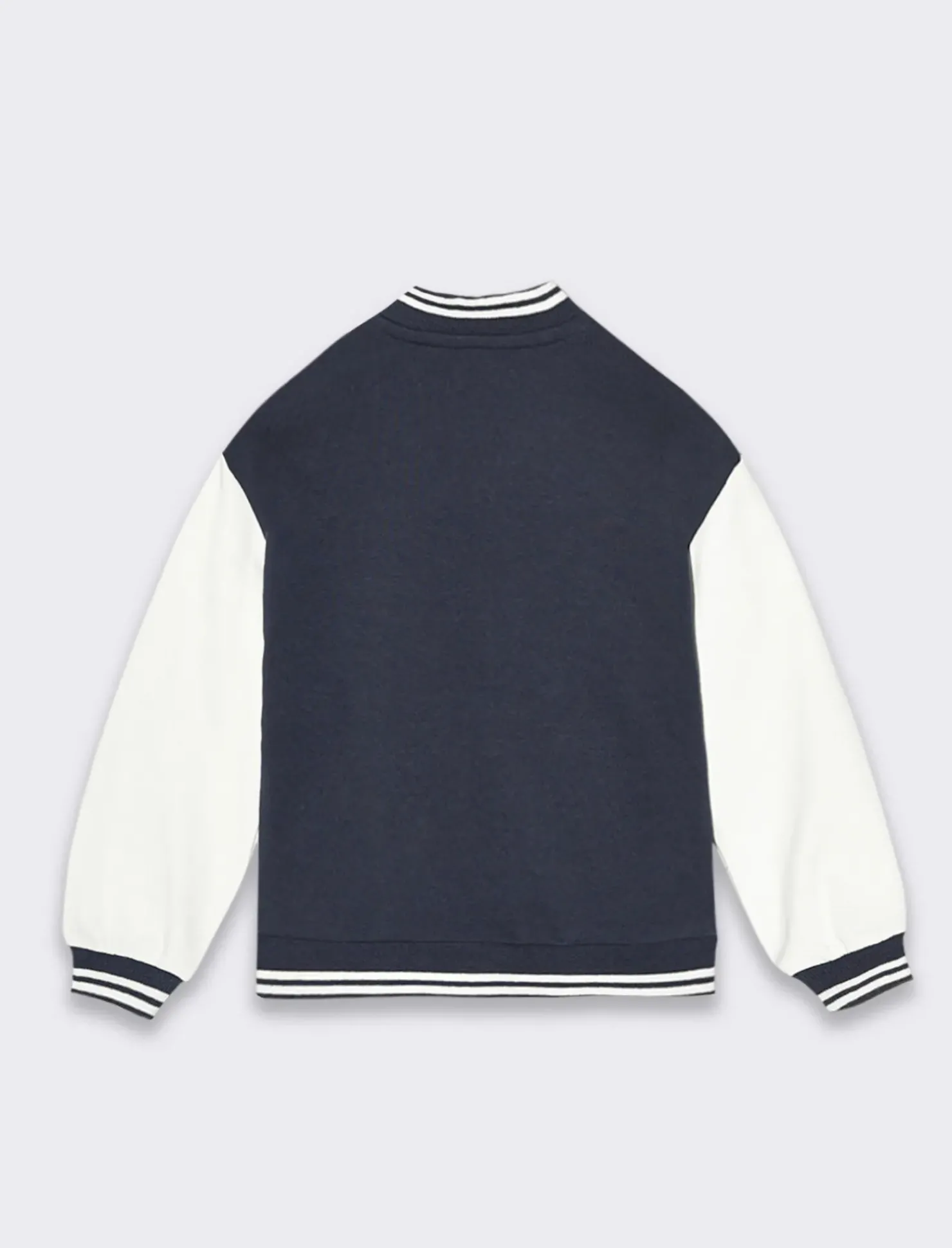 Felpa con bottoni modello college per neonato, ideale per un look sportivo e alla moda. Caratterizzata da un’apertura frontale e maniche a contrasto, offre comfort e libertà di movimento. La costina al collo, ai polsi e sul fondo aggiunge un tocco di stile. La stampa frontale in stile varsity conferisce un aspetto vivace e giovanile. Disponibile in due varianti colore, è perfetta per ogni occasione, dal gioco al relax. Il prodotto è di colore Blu