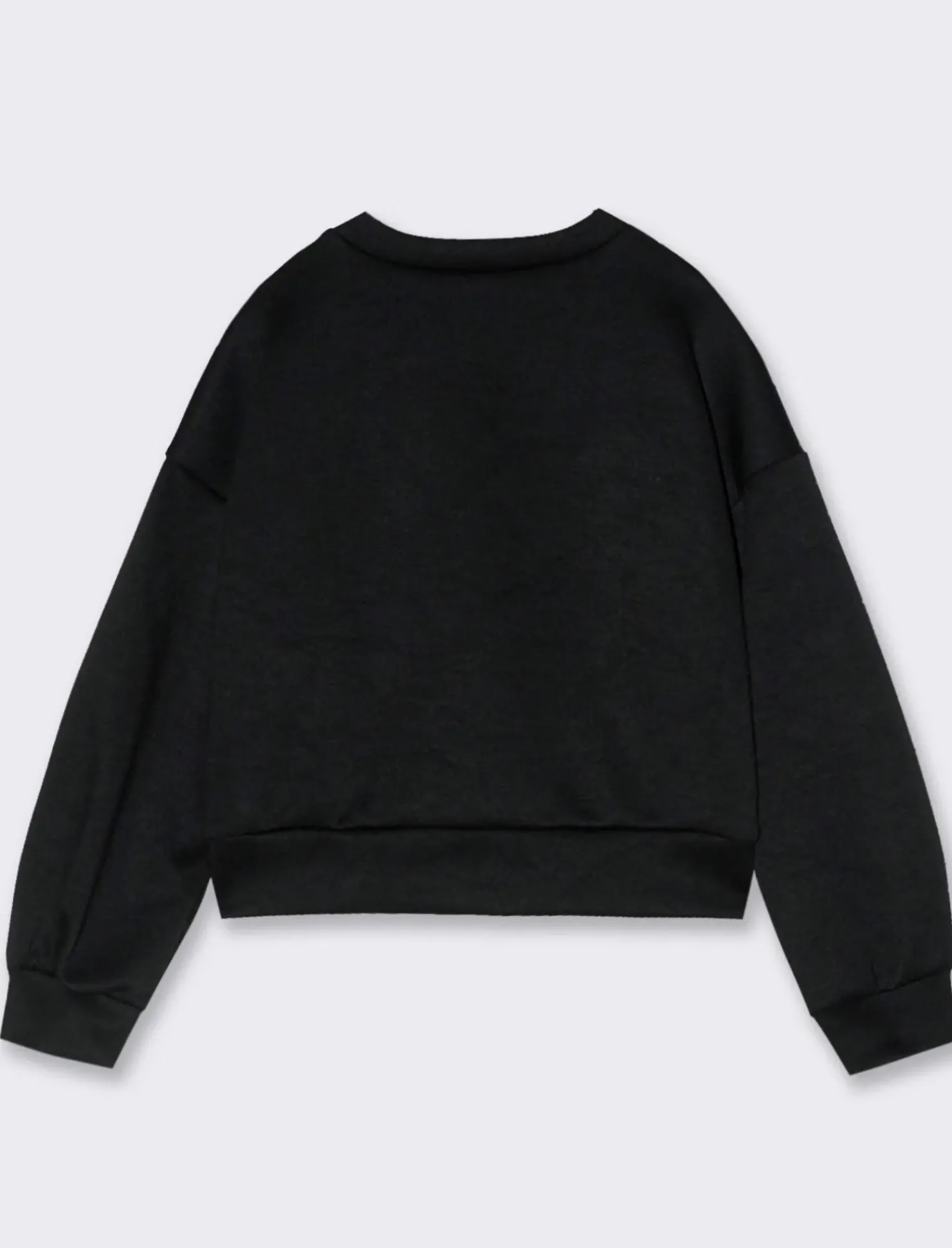 Piazza Italia Felpa elegante da bambina con fiocco in paillettes. – Nero Best