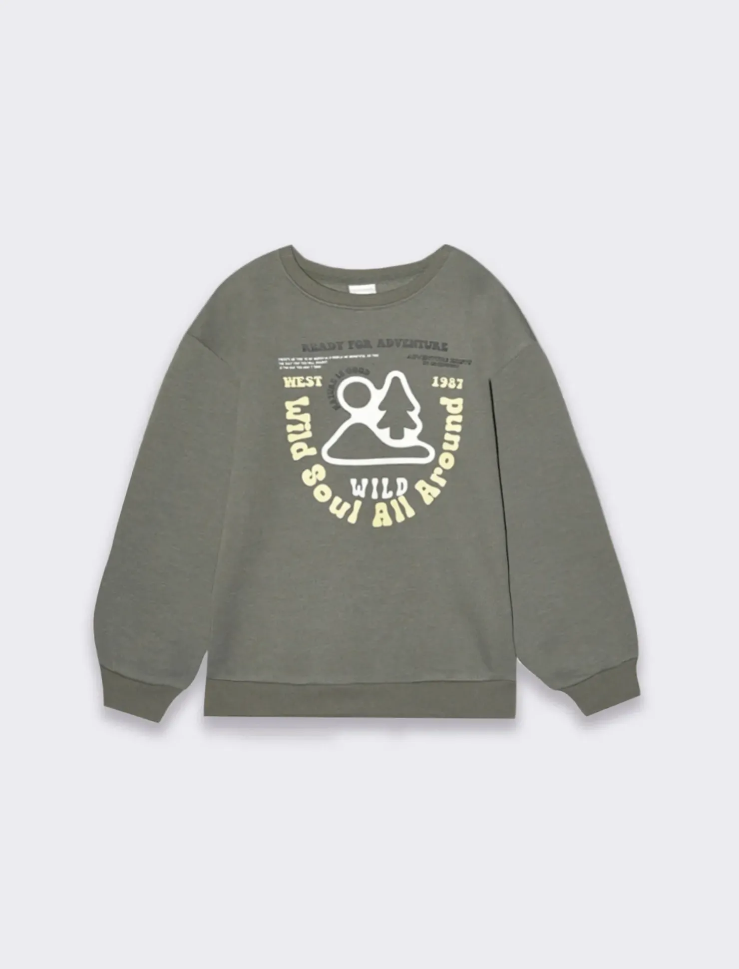 Piazza Italia Felpa garzata da bambino modello girocollo e stampa frontale – militare Verde Best