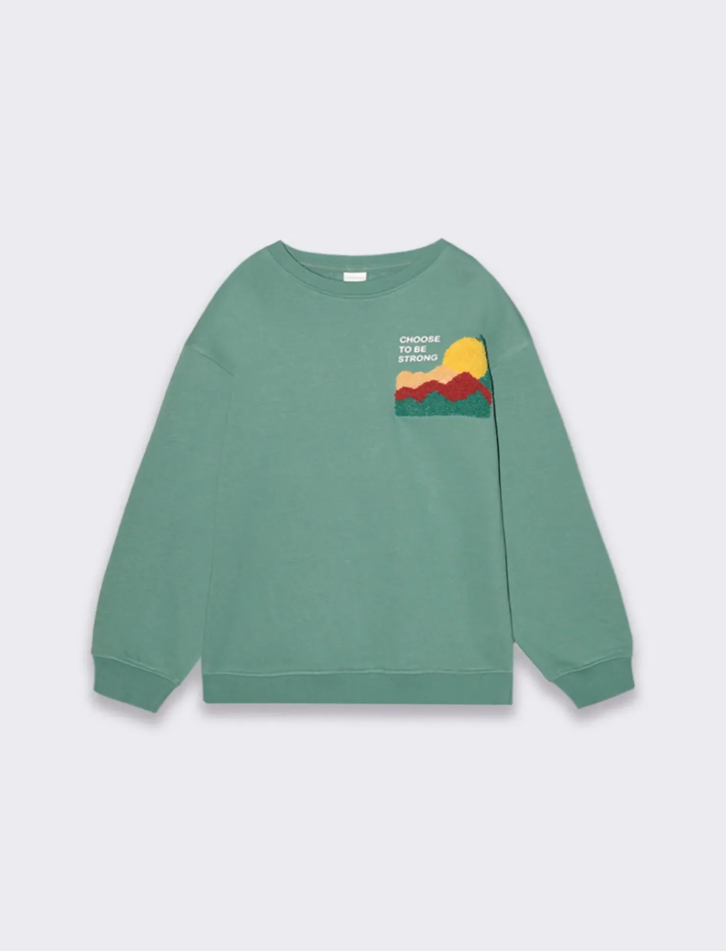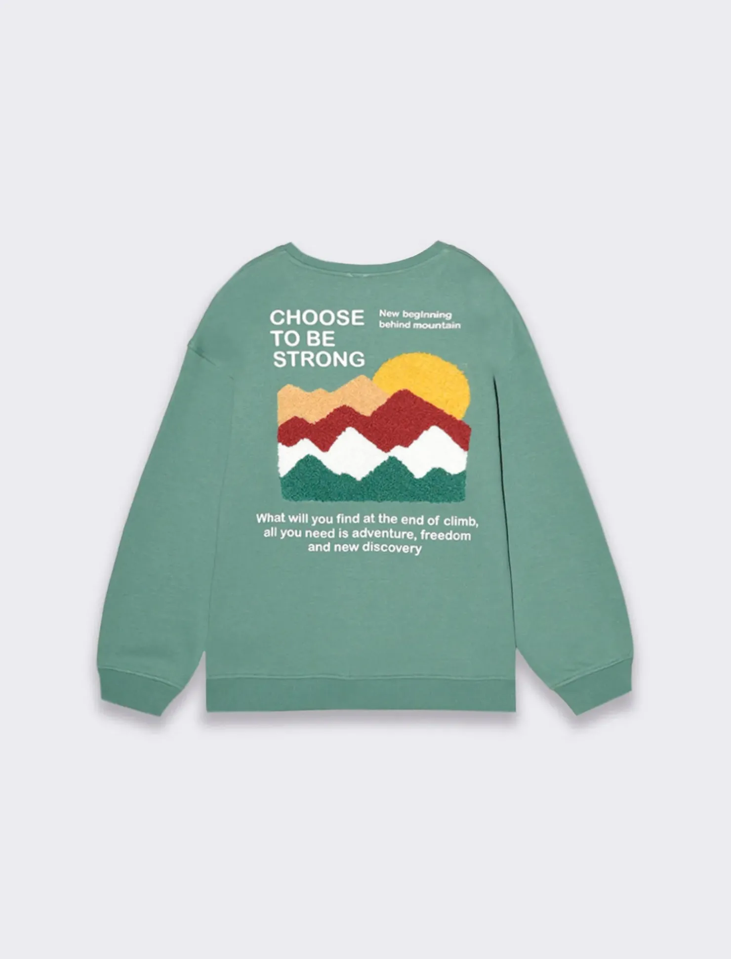 Piazza Italia Felpa girocollo con ricamo spugna sul dietro e stampa – Verde Discount