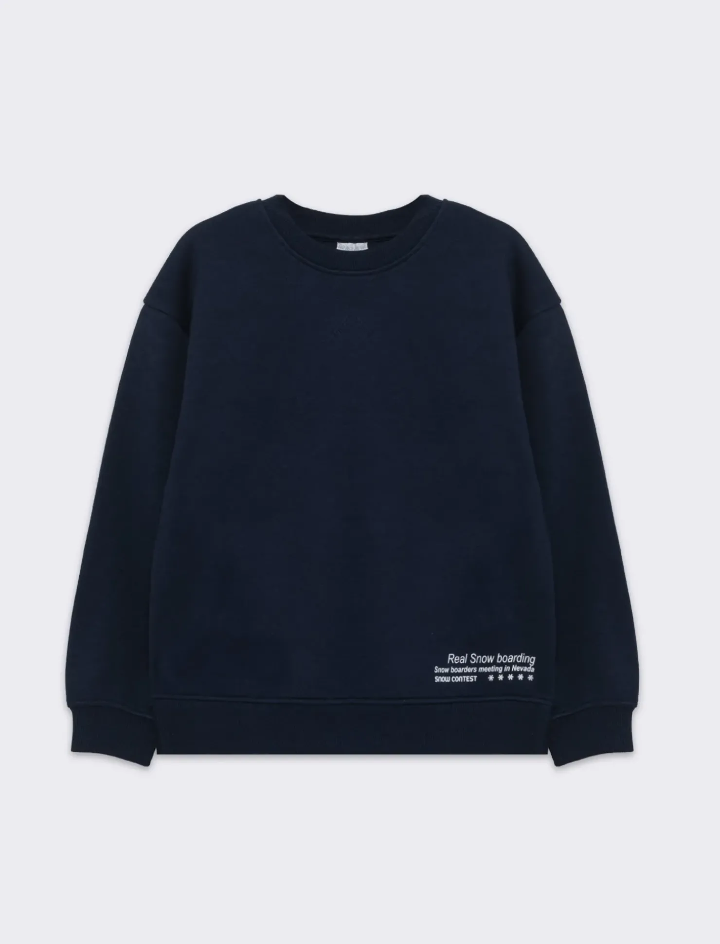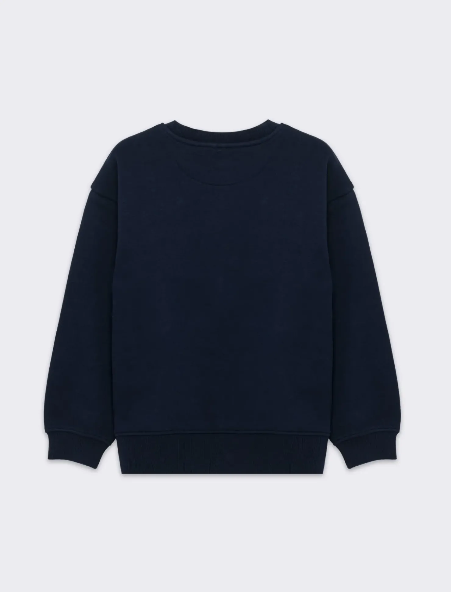Felpa da bambino modello girocollo garzata tinta unita. Fondo corpo e maniche in costine in tono. Stampa piccola sul davanmti. Ideale per qualsiasi occasione. Il prodotto è di colore Blu