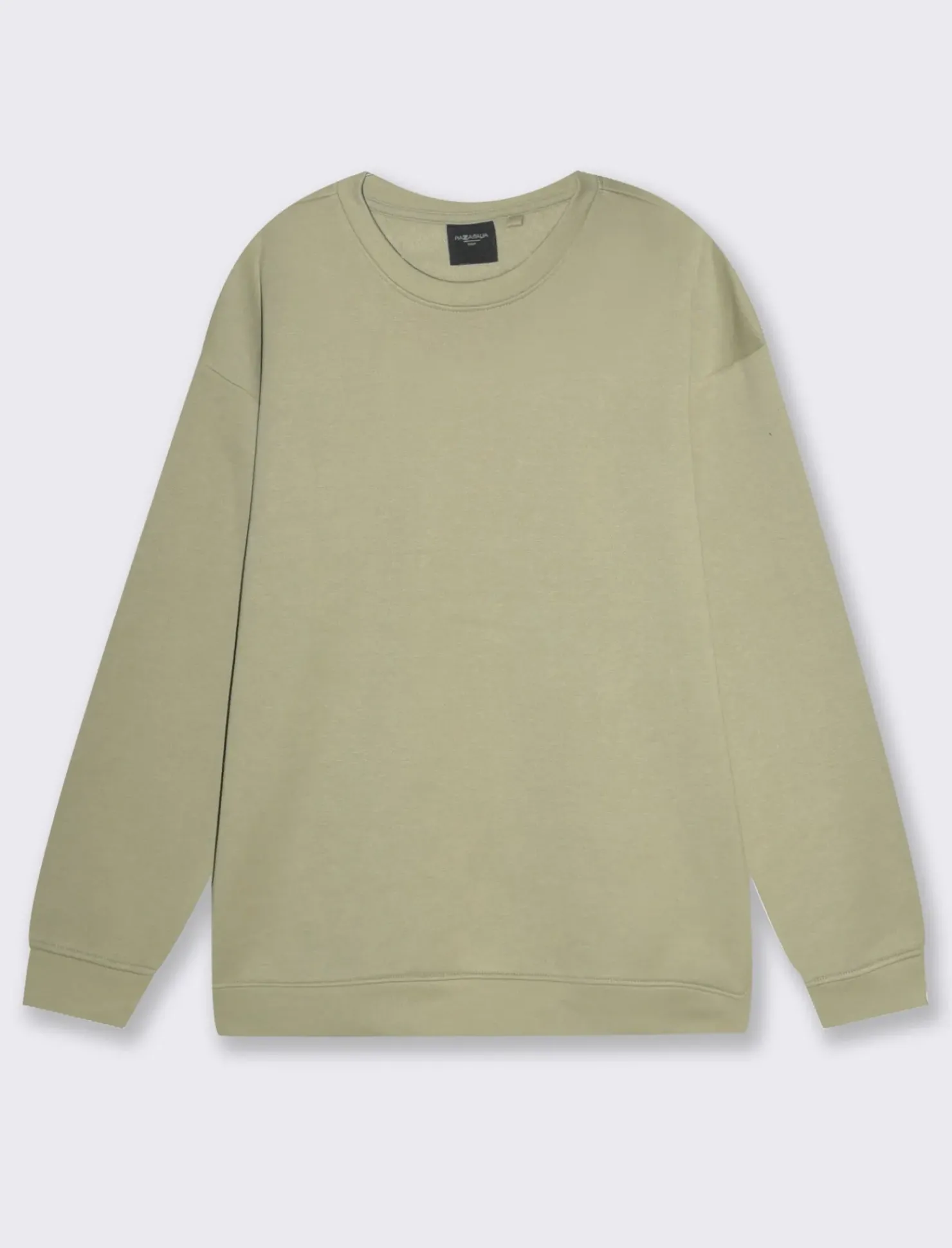 Piazza Italia Felpa girocollo in misto cotone garzato, relaxed fit – salvia Verde Shop